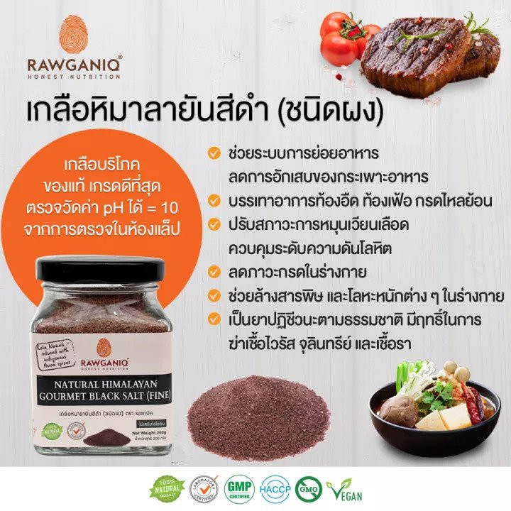 Rawganiq เกลือดำ เกลือหิมาลายันสีดำชนิดผง เกรดพรีเมี่ยม Himalayan Gourmet Black Salt Fine