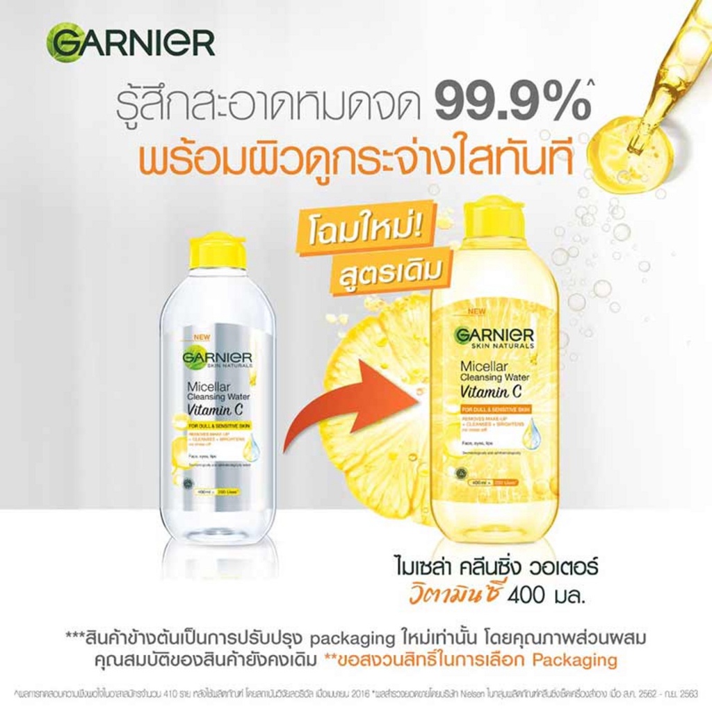 GARNIER Skin Naturals Micellar Cleansing Water Vitamin C ที่เช็ดเครื่องสำอาง 400ml