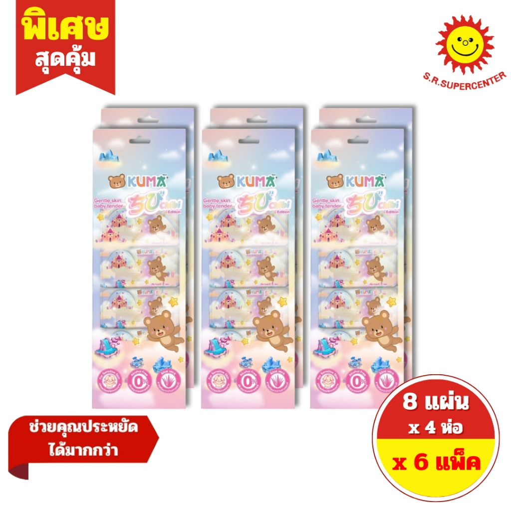 [ 6 ชิ้น ] Kuma คุมะ เจนเทิล สกิน เบบี้ เทนเดอร์ ขนาด 8 แผ่น x 4 ซอง (6แพ็ค)