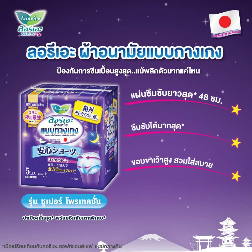 [แพ็ค 2] ลอรีเอะ แบบกางเกง รุ่น ซูเปอร์โพรเทค 5ชิ้น Laurier Pants Super Protection 5pcs. ผ้าอนามัยกางเกง