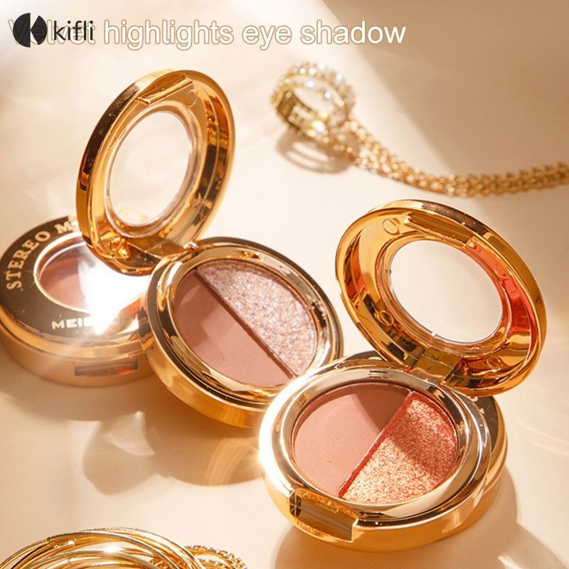 【kifli1】อายแชโดว์ 2สี อายแชโดว์พาเลท กันน้ำ เนื้อใยไหม ประกายชิมเมอร์-KI