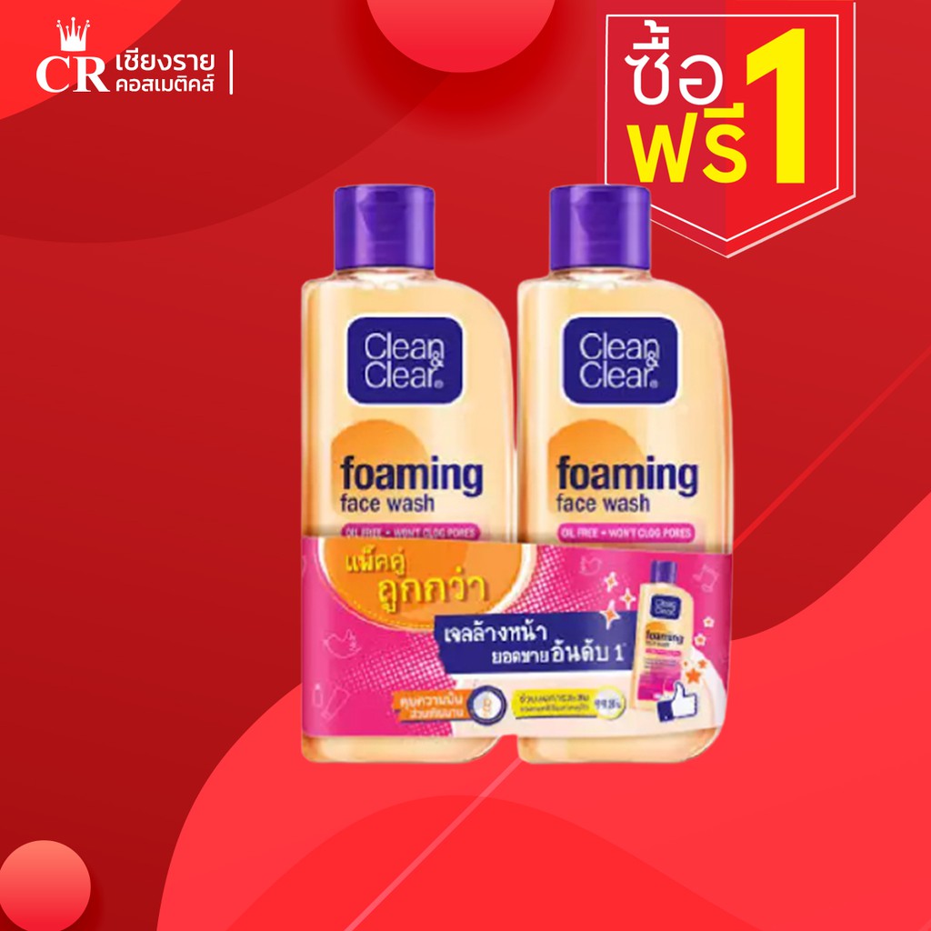 [1แถม1] คลีนแอนด์เคลียร์ โฟมล้างหน้า โฟมมิ่งเฟเชียลวอช 100มล.X2 Clean&Clear Foaming Facial Wash Twin Pack 100 ml.X2 NLM