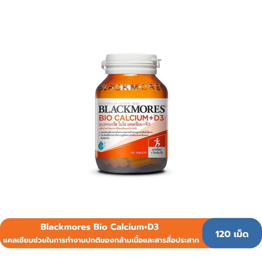 Blackmores Bio Calcium+D3 แบลคมอร์ส ไบโอ แคลเซียม+ดี3 (ผลิตภัณฑ์เสริมอาหารให้แคลเซียมและวิตามินดี) 120 เม็ด