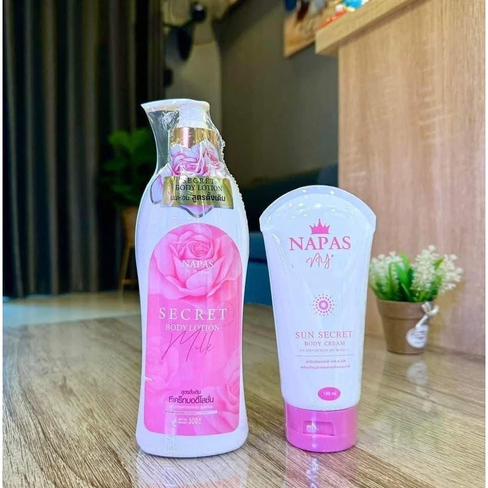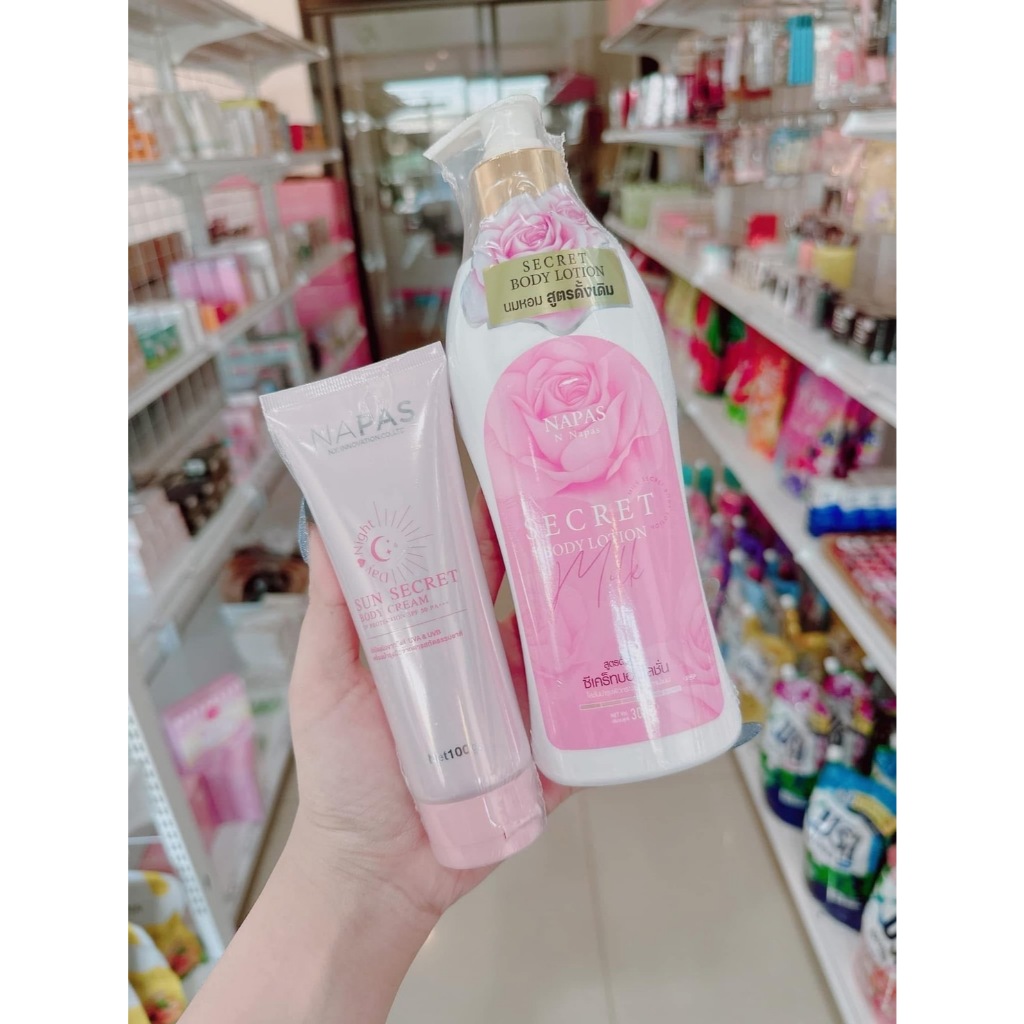 (โปรคู่จิ้นx2) โลชั่นนมหอม NAPAS SECRET BODY LOTION นภัส ซีเคร็ท บอดี้ โลชั่นนมหอม 300ml. นภัส ออยไวท์ บอดี้ ครีม NAPAS