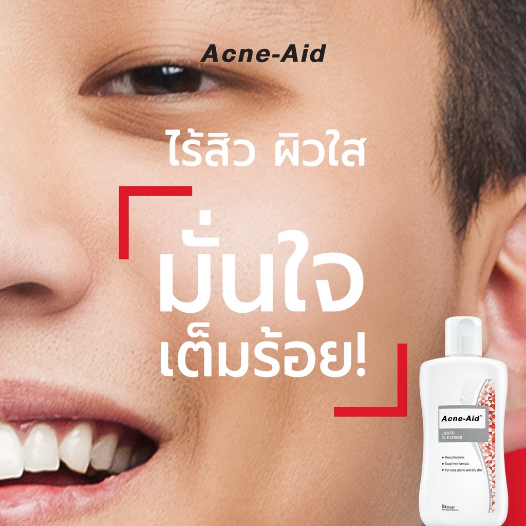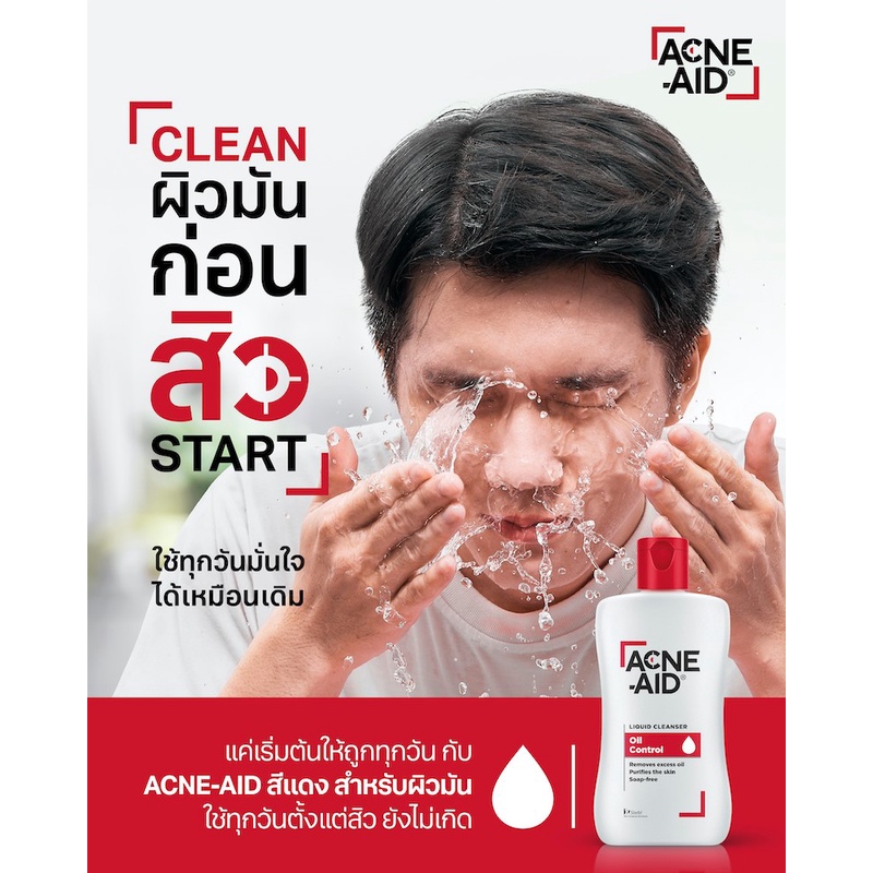 [สีแดง][ไม่มีซีลพลาสติก] Acne Aid Liquid Cleanser แอคเน่ เอด ลิควิด คลีนเซอร์ 100 ml