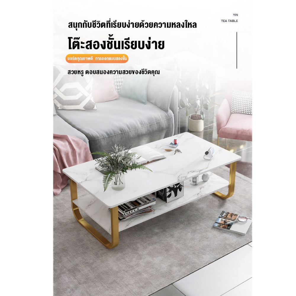 Lucky😸พร้อมส่งจากไทย โต๊ะกลางโซฟาสไตล์โมเดิร์น มินิมอลลงตัว ท็อปไม้อัดMDF เรียบหรูดูดี