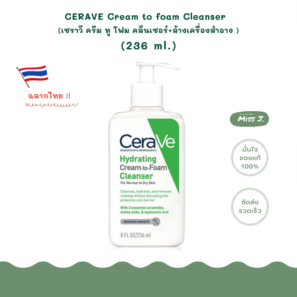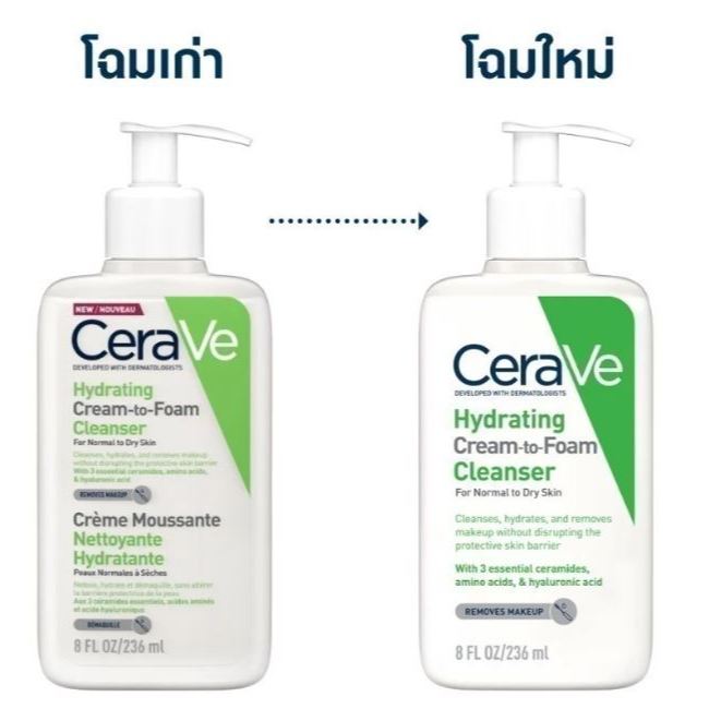 🥦ฉลากไทย !!!🥦เซราวี CERAVE HYDRATING CREAM-TO-FOAM CLEANSER คลีนเซอร์+ล้างเครื่องสำอาง 236 ml.
