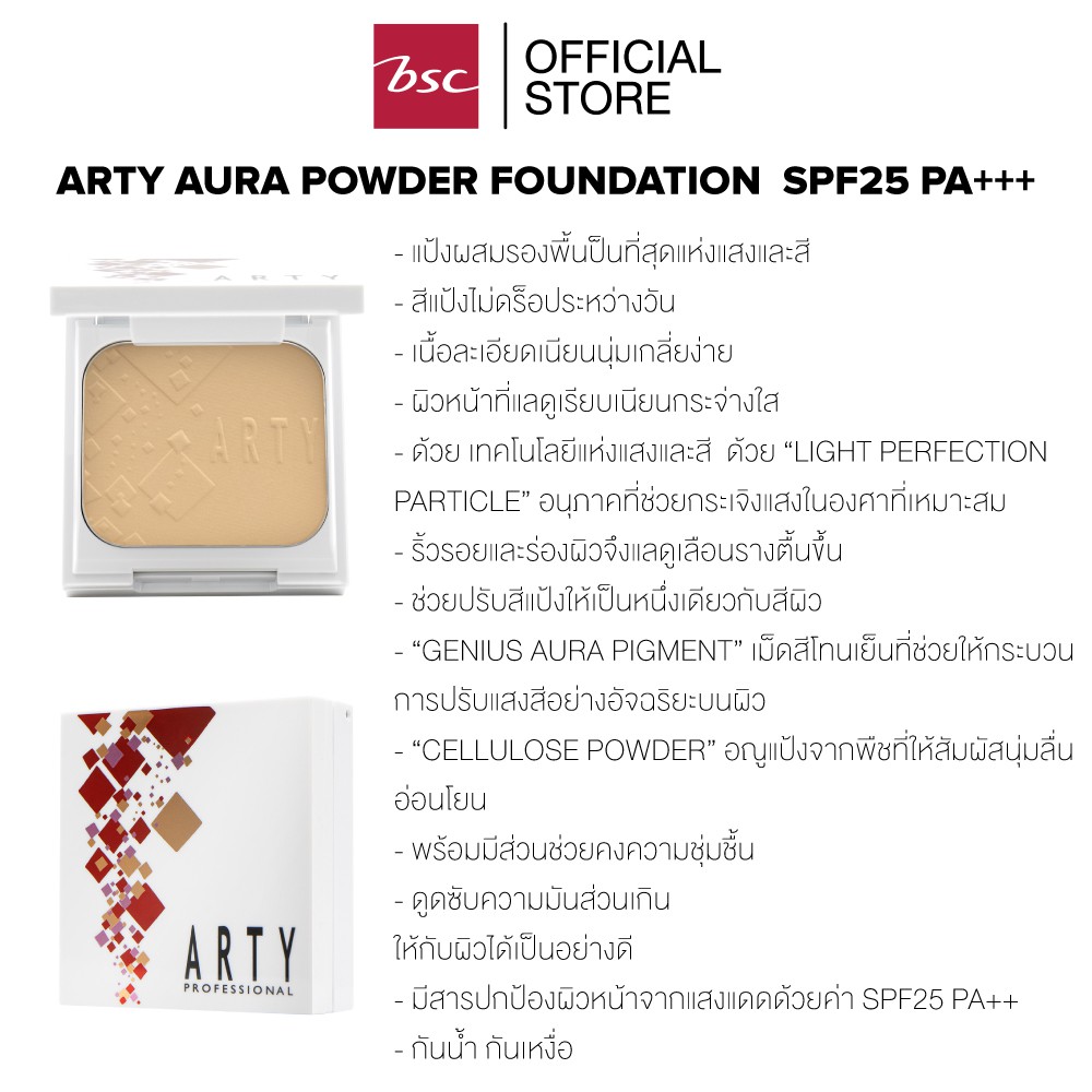[ ตลับจริง แถม รีฟิล ] ARTY AURA POWDER CAKE SPF 25 PA++ 11 กรัม แป้งผสมรองพื้น อันเป็นที่สุดแห่งแสงและสี เนื้อละเอียด