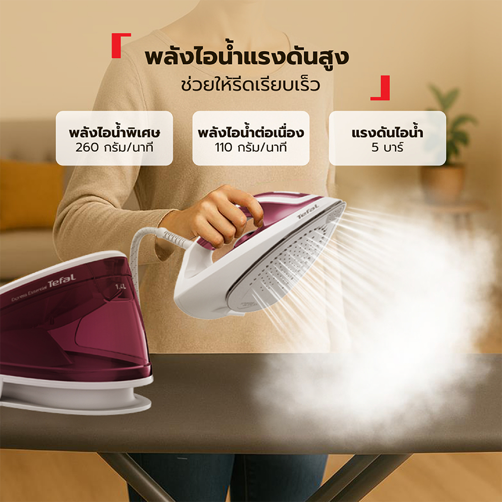 Tefal เตารีดแรงดันไอน้ำ Steam Station Express Essential SV6110 แรงดัน 5 บาร์ รุ่น SV6110T0