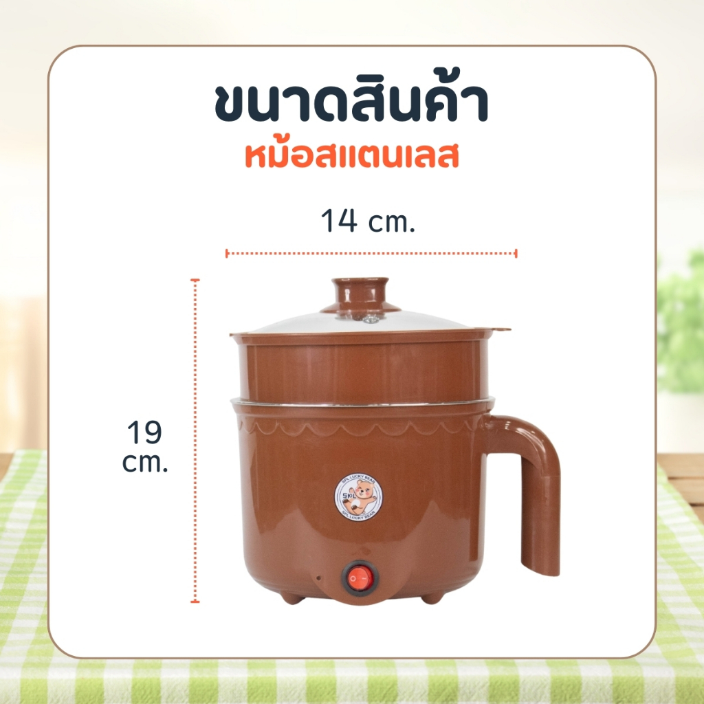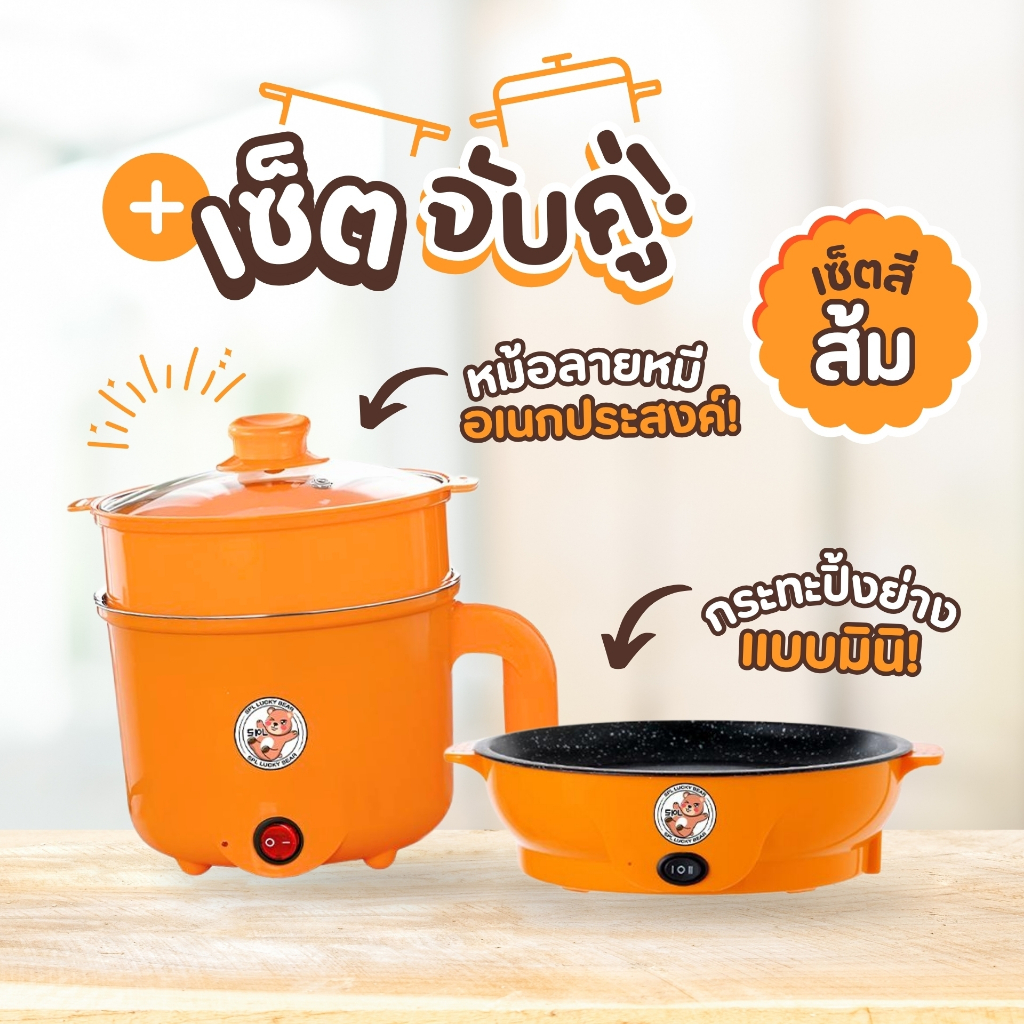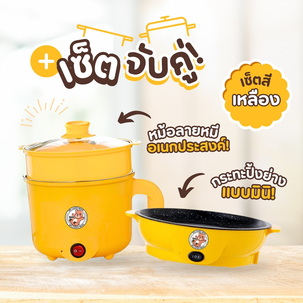 เซตคู่ หม้อ+กระทะ ลายหมี ได้2ชิ้น สแตนเลส หม้ออเนกประสงค์ กระทะมินิ เตาปิ้งย่างไฟฟ้า หม้อสุกี้ กระทะย่างเนย หม้อมาม่า