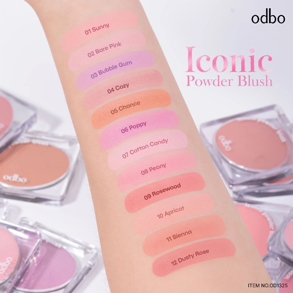 Odbo Iconic Powder Blush 4.2 g.บลัชออนเนื้อฝุ่น เนื้อเนียนนุ่ม พิกเมนต์แน่น สีชัด