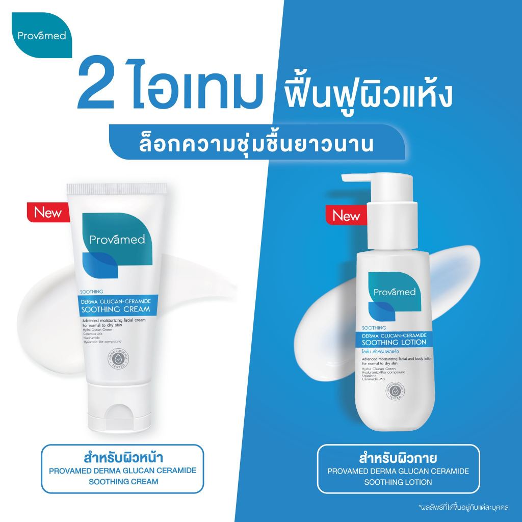 [SET สำหรับผิวเเห้งเเละผิวแพ้ง่าย] PROVAMED DERMA GLUCAN-CERAMIDE SOOTHING CREAM 50 ML & LOTION 100 ML