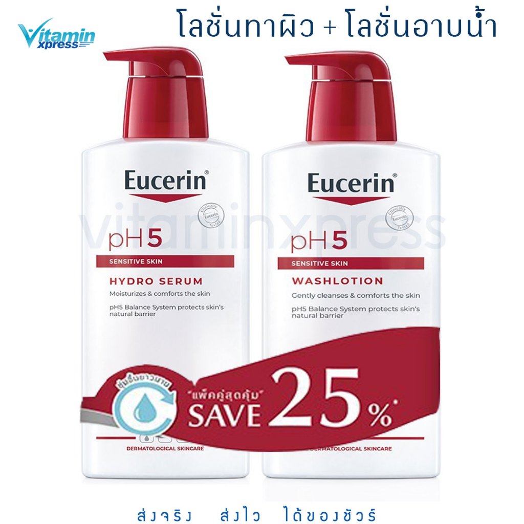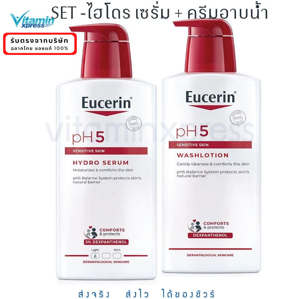 Eucerin pH5 HYDRO SERUM 400 ML AND pH5 SENSITIVE SKIN WASHLOTION 400 ML เซตบอดี้เซรั่มเพื่อผิวชุ่มชื้น