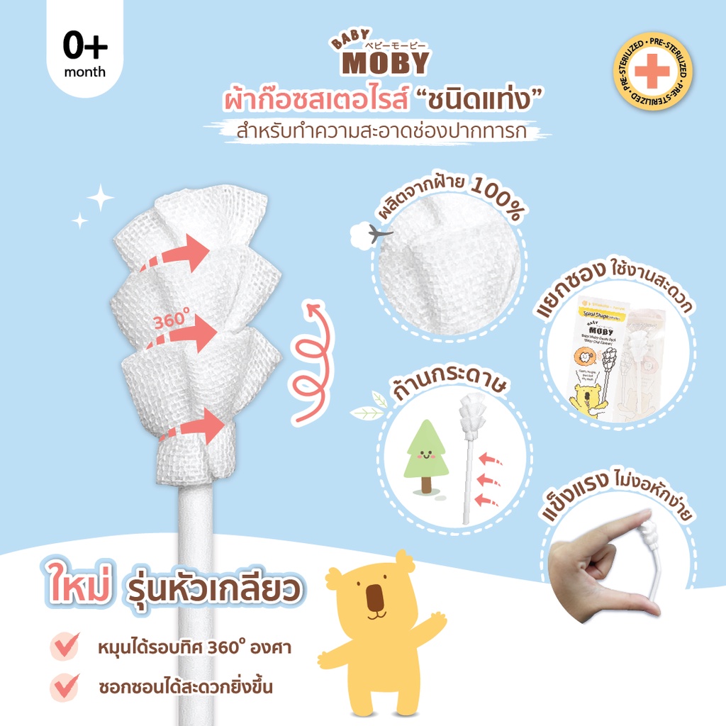 🛵ส่งด่วนทันทีตัดรอบ5โมงเย็น🛵MoBy ที่เช็ดลิ้นแบบก้าน แบบหัวเกลียว ที่เช็ดลิ้นเด็ก1กระปุก บรรจุ32ชิ้น