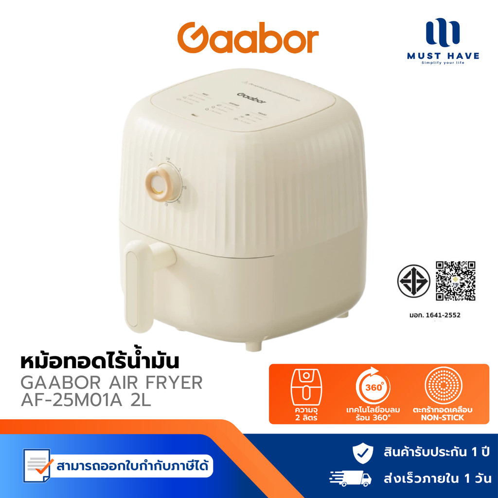 Gaabor AirFryer AF-25M01A หม้อทอดไร้น้ำมัน 2 ลิตร 900W อเนกประสงค์ ระบบตัดไฟอัตโนมัติ