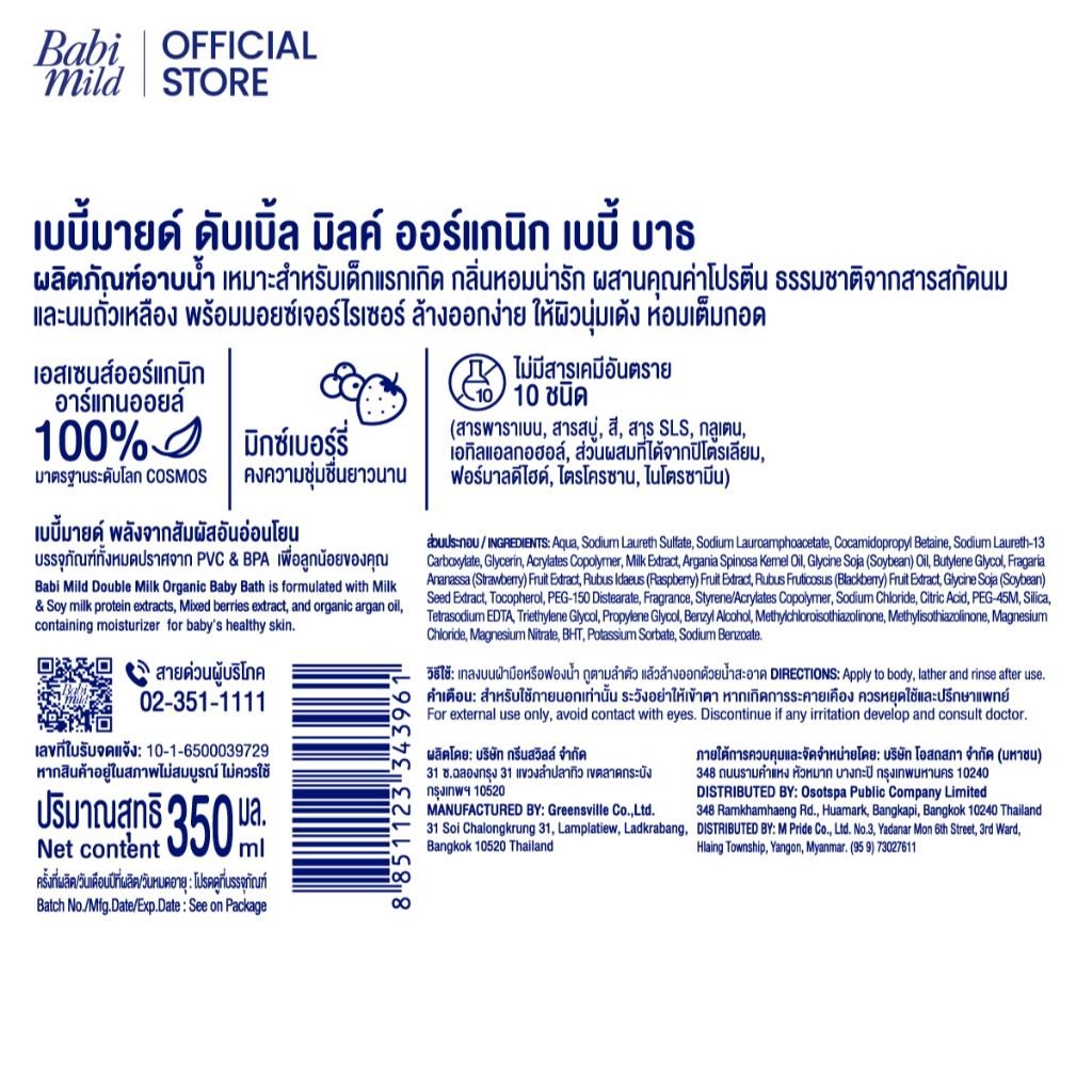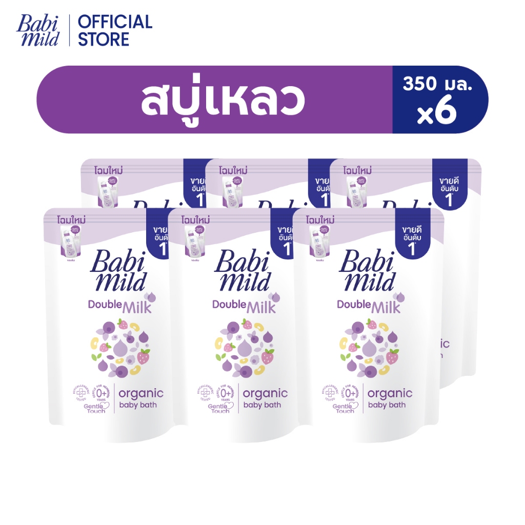 เบบี้มายด์ สบู่เหลว ดับเบิ้ลมิลล์ ออร์แกนิค ถุงเติม 350 มล. x6 / Babi Mild Double Milk Bath Refill 350ml x6