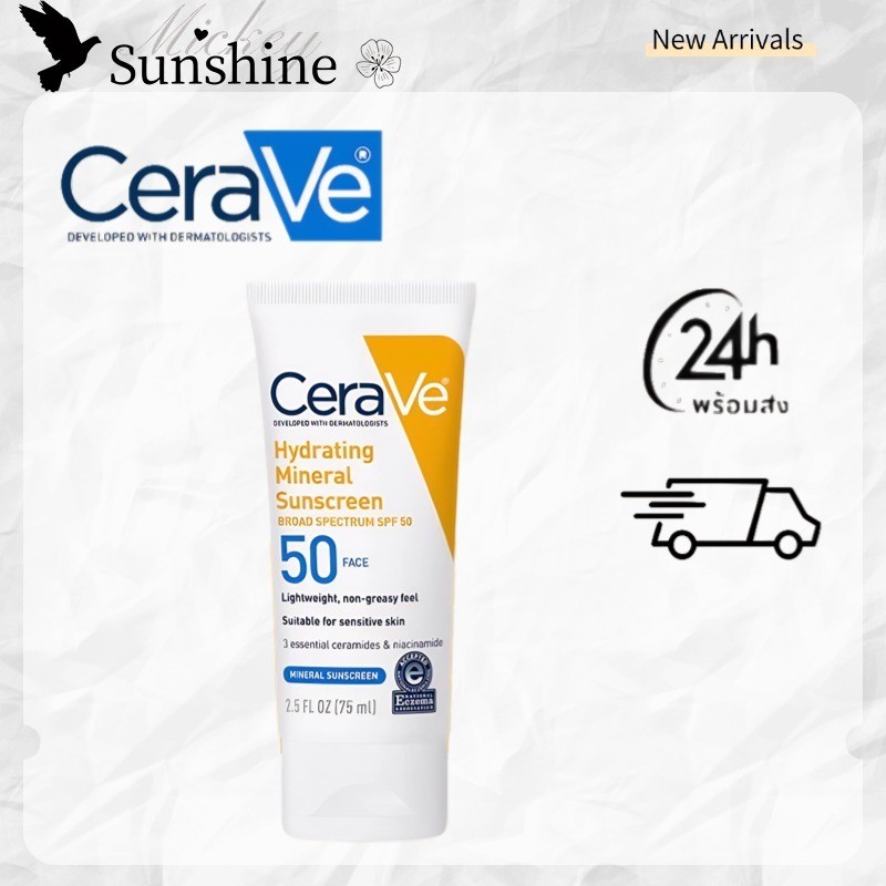 🔥รุ่นล่าสุด🔥2025 เซราวี ครีมกันแดด สำหรับผิวหน้า Hydrating Mineral Sunscreen SPF 50 Face 75 ml