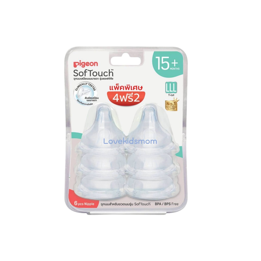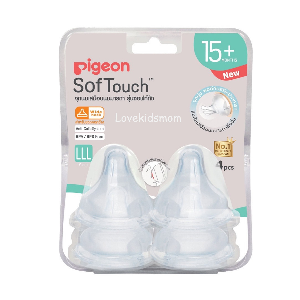 Pigeon พีเจ้น จุกนมเสมือนฯ รุ่นซอฟท์ทัชฐานกว้างแพ็ค 4 แพ็ค 2 ไซส์ LLL สำหรับเด็ก 15 เดือนขึ้นไป