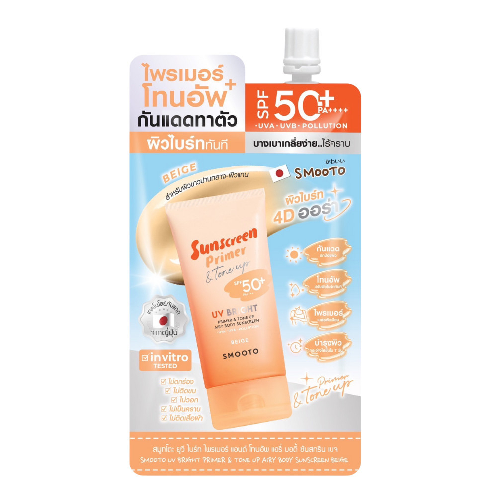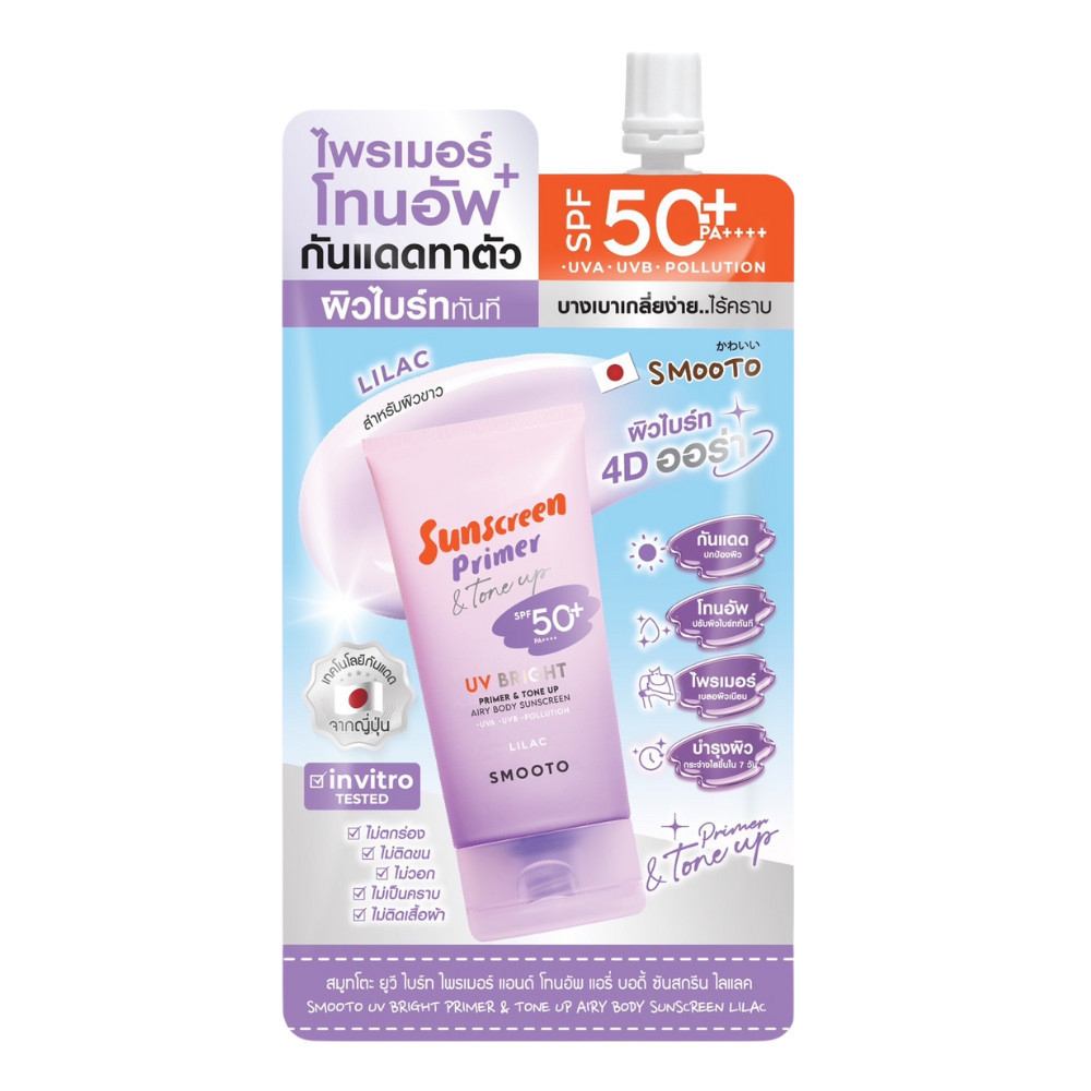 (ซอง) โทนอัพกันแดด Smooto UV Bright Primer & Tone Up SPF50+ PA++++ เนื้อบางเบา เกลี่ยง่าย ไม่วอก