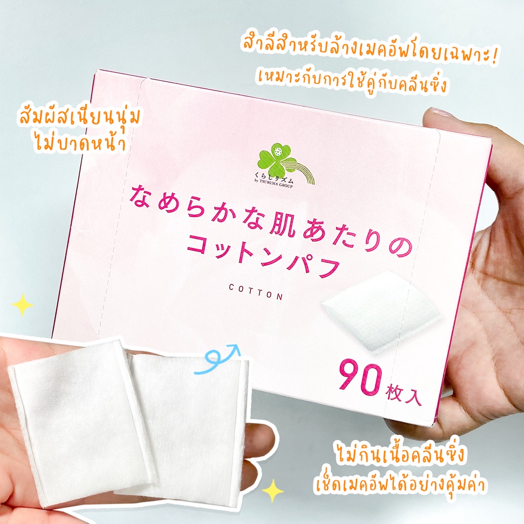 คุราชิ-ริธึ่ม เมคอัพ ค้อตตอน พัฟ90 แผ่น X 2กล่อง/Kurashi-Rhythm Makeup Cotton Puff 90Sheetsx2