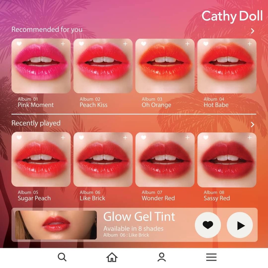 ถูก/แท้/มีไลฟ์ ลิป Cathy Doll Glow Gel Tint ทินท์ เนื้อเจลทินท์ ติดทน ไบรท์วิน