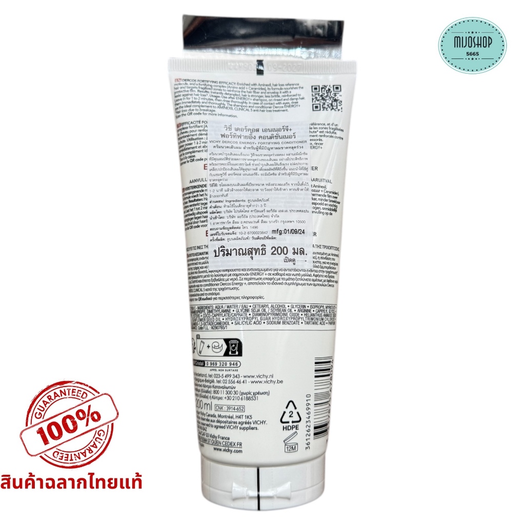วิชี่ VICHY DERCOS ENERGY+ FORTIFYING CONDITIONER ครีมนวดเส้นผม สำหรับผู้ที่มีปัญหาผมขาดหลุดร่วง