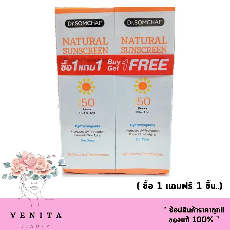 ( ซื้อ 1 แถมฟรี 1 ชิ้น) Dr.Somchai Natural Sunscreen ครีมกันแดด ดร.สมชาย เนอเชอรัล ซันสกรีน SPF50 (20g.) มี 2 สีผิว