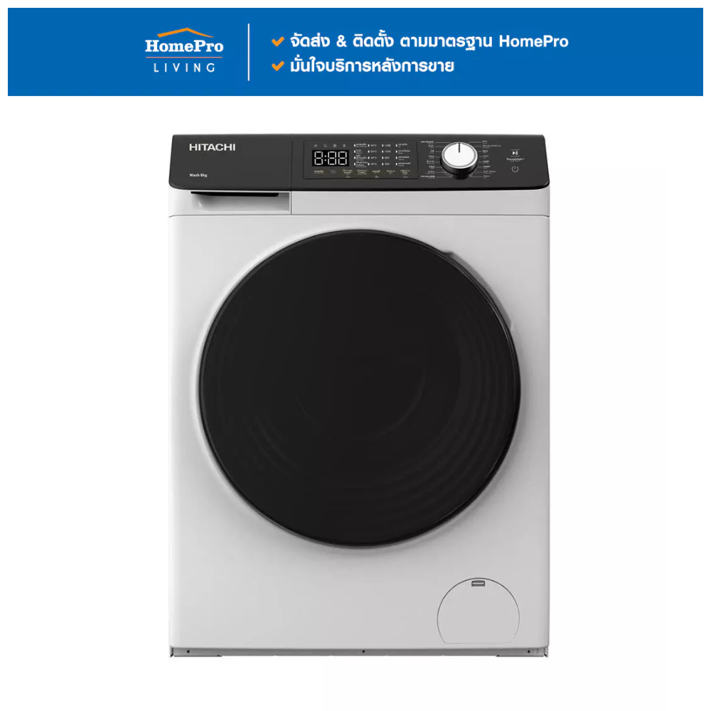 [จัดส่งพร้อมติดตั้ง] HITACHI เครื่องซักผ้าฝาหน้า BD802HVOW 8 กก. 1200RPM อินเวอร์เตอร์ จัดส่งโดย HomePro