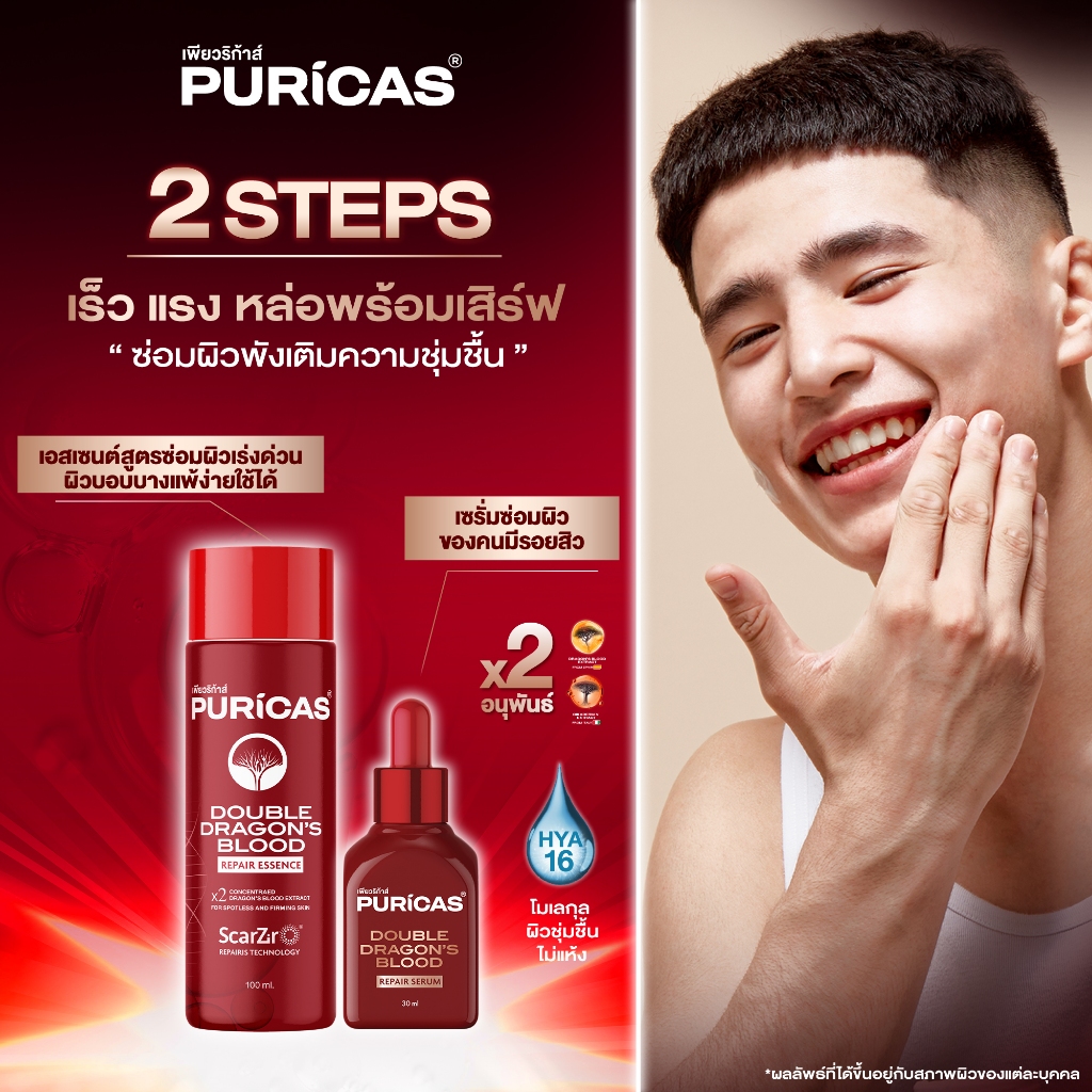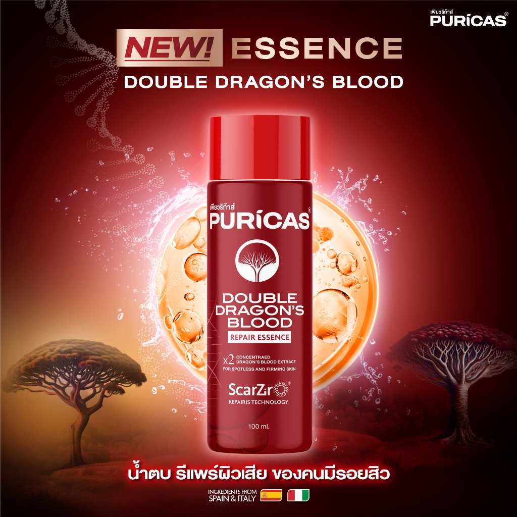 [ซ่อมผิวพัง เติมความชุ่มชื้น] Puricas Double Essence 100ml.+ Double Dragon's Blood Serum 30ml.