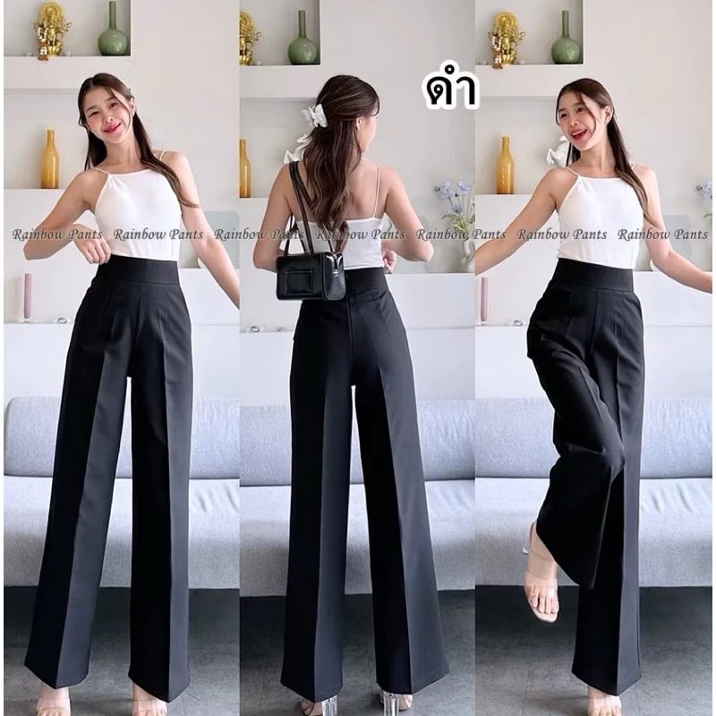 กางเกงเอวสูงขากระบอก สีดำ ทรงตรง ขอบเอวเรียบ ใส่ได้ทุกโอกาส กางเกงขากระบอกผู้หญิง กางเกงผู้หญิงทรงสวย ✨🖤 มี 2 ไซส์
