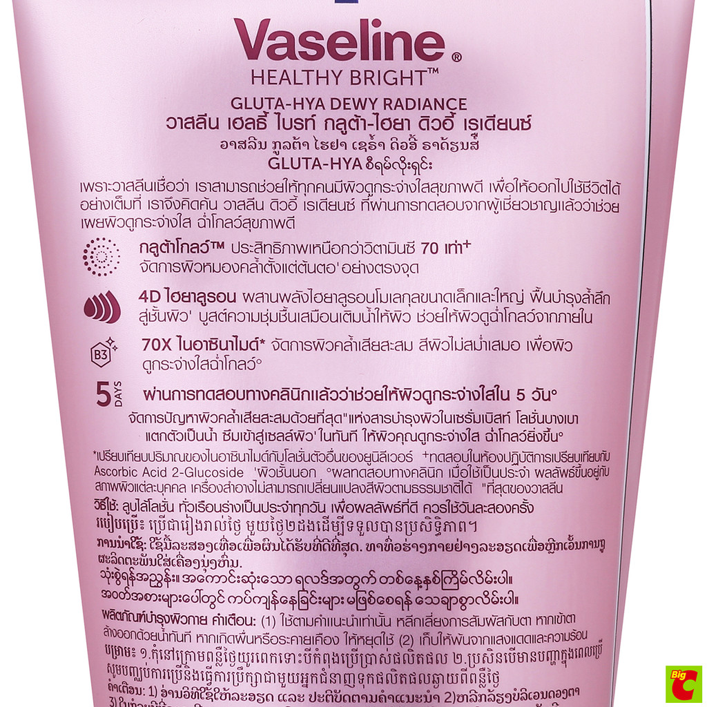วาสลีน เฮลธี ไบรท์ กลูต้า-ไฮยา เซรั่ม เบิสท์ ดิวอี้ เรเดียนซ์ โลชั่นบำรุงผิวกาย 300 มล. สีชมพู