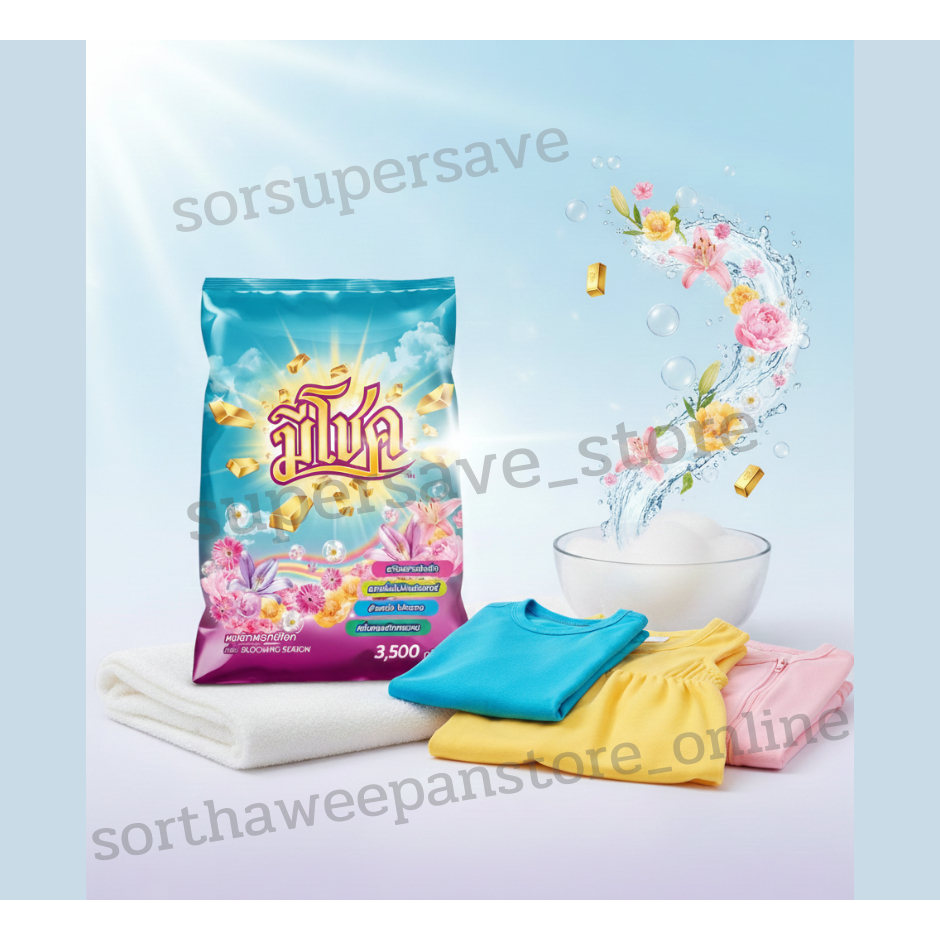 มีโชค ผงซักฟอก ขจัดคราบฝังลึก กลิ่น BLOOMING SEASON //ขนาด3500กรัม//