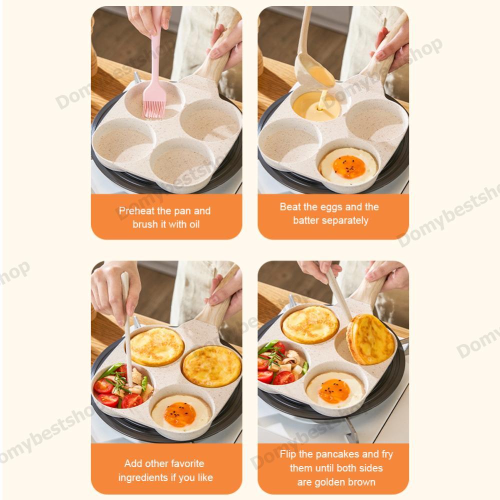 COD กระทะไข่สี่ถ้วยสําหรับอาหารเช้าแพนเค้กเบอร์เกอร์แซนวิช Nonstick ทําความสะอาดง่ายกระทะแพนเค้กสําหรับเตาแก๊สเต าแม่เหล็กไฟฟ้า