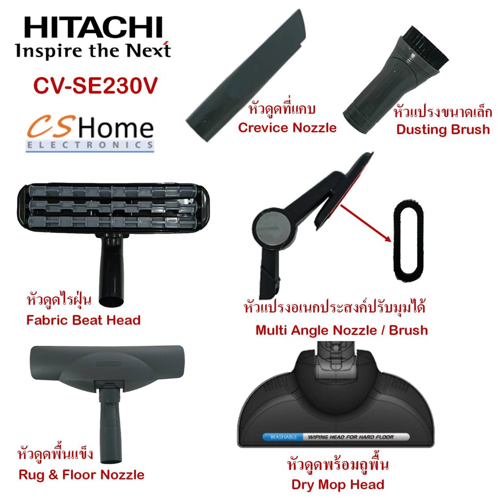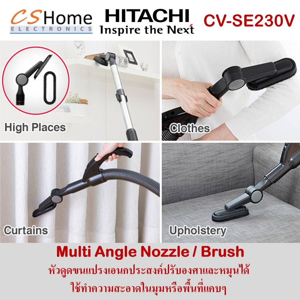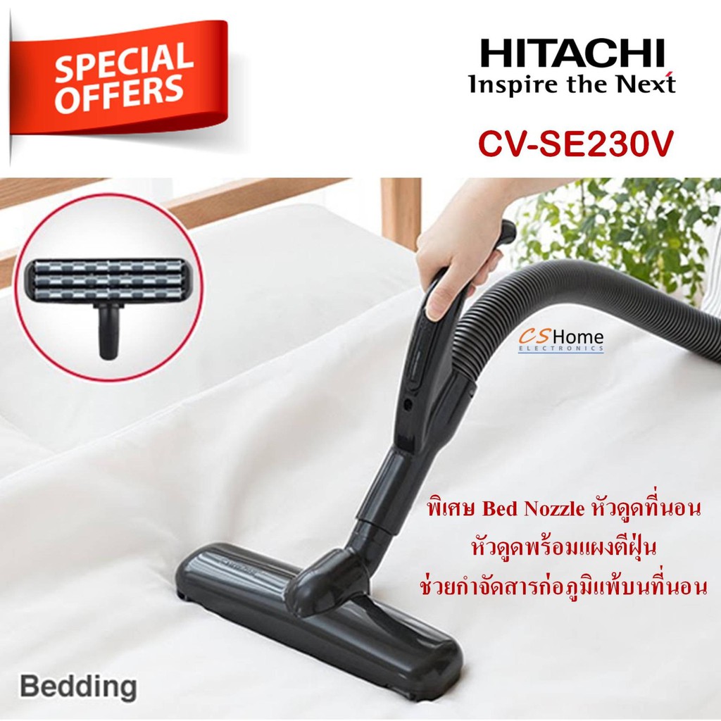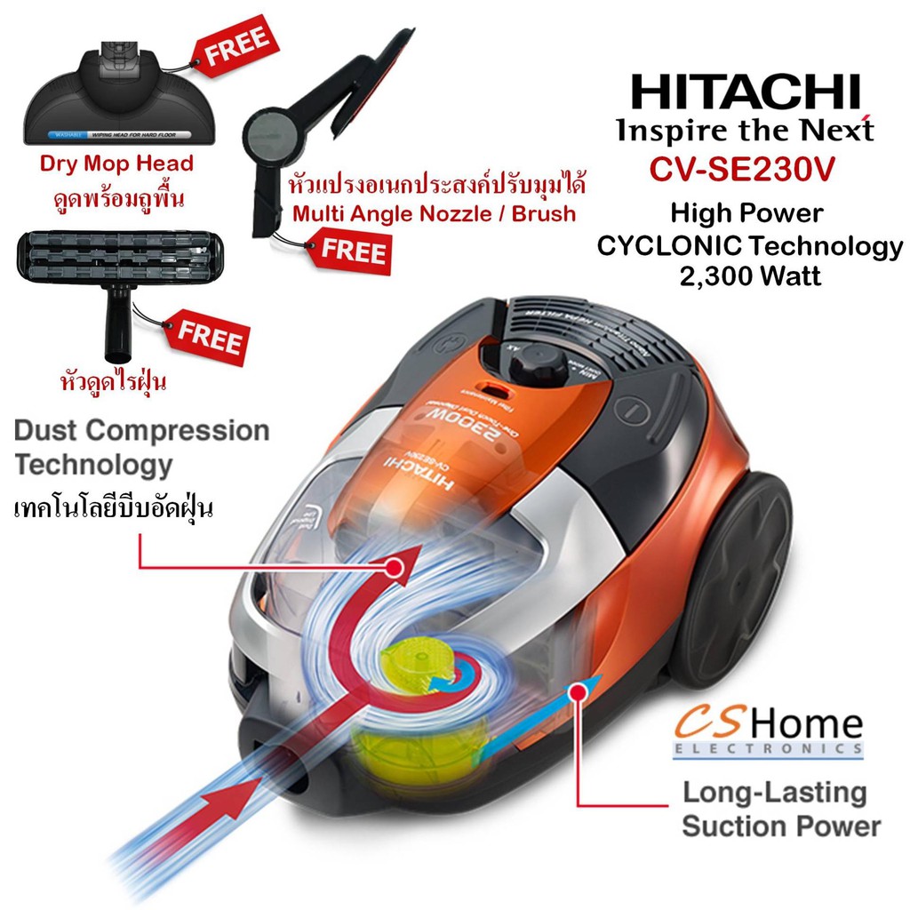 HITACHI เครื่องดูดฝุ่นแบบกล่องเก็บฝุ่น 2300 วัตต์ CV-SE230Vกำลังดูด 490 วัตต์ กำจัดไรฝุ่นจุถึง 3 ลิตร รับประกันสินค้า1ปี