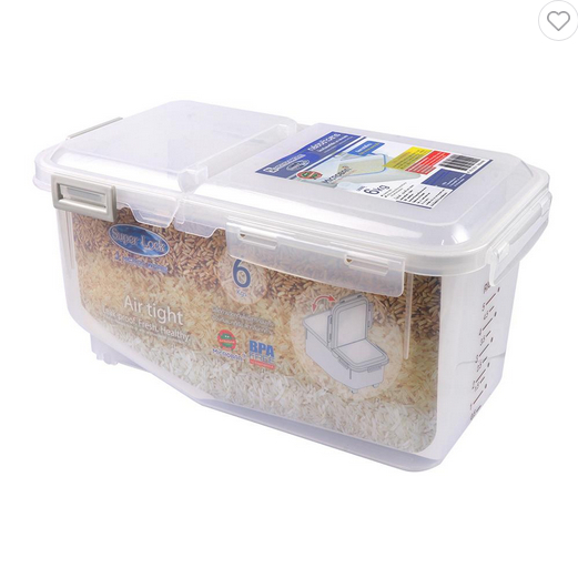 ถังข้าวสารพลาสติก 6 กก. + ถ้วยตวง SUPER LOCK 6044 สีขาว