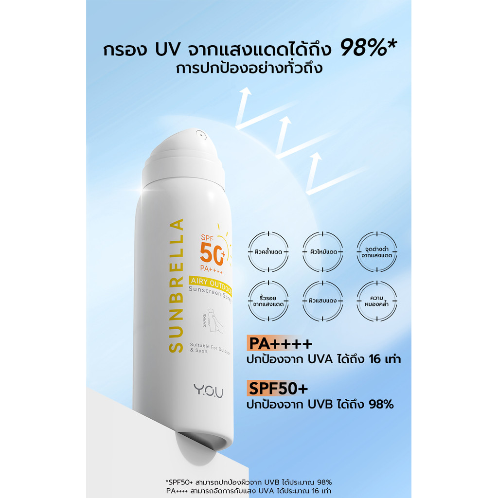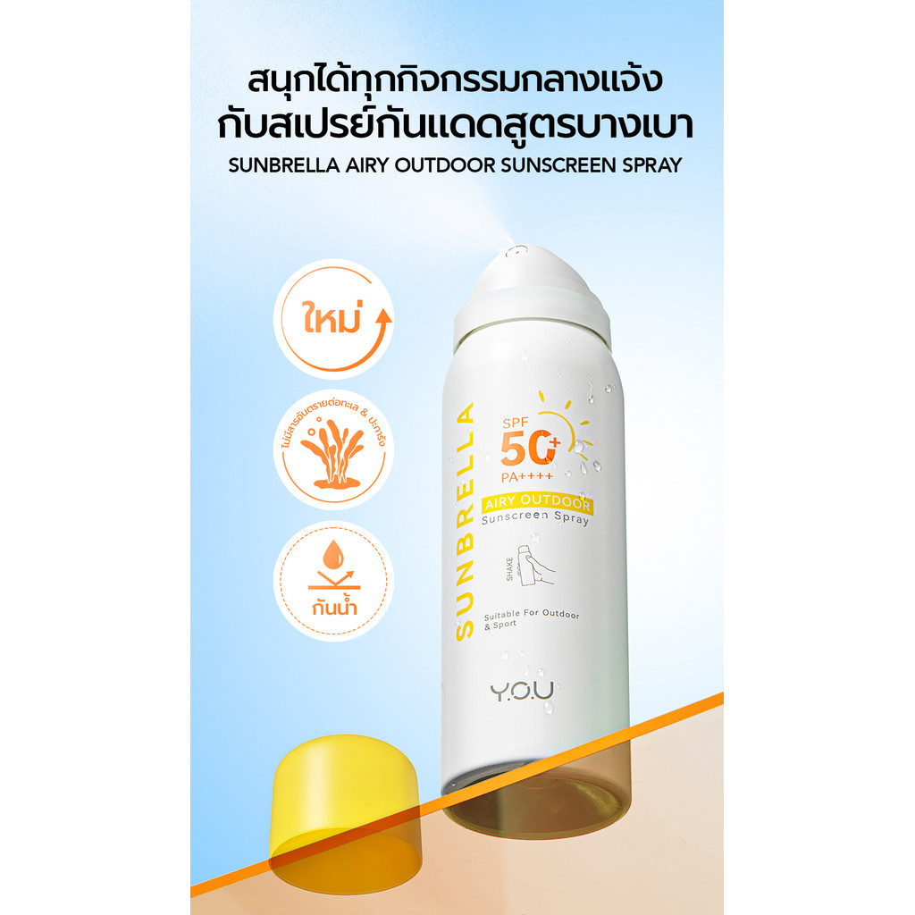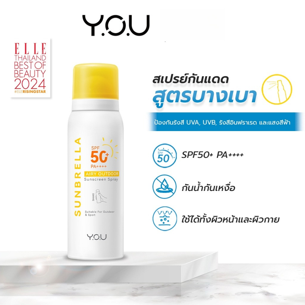 สเปรย์กันแดด วาย.โอ.ยู บางเบา สำหรับผิวหน้าและผิวกาย SPF 50+ PA++++ Y.O.U SUNBRELLA Sunscreen Spray (50ml.)