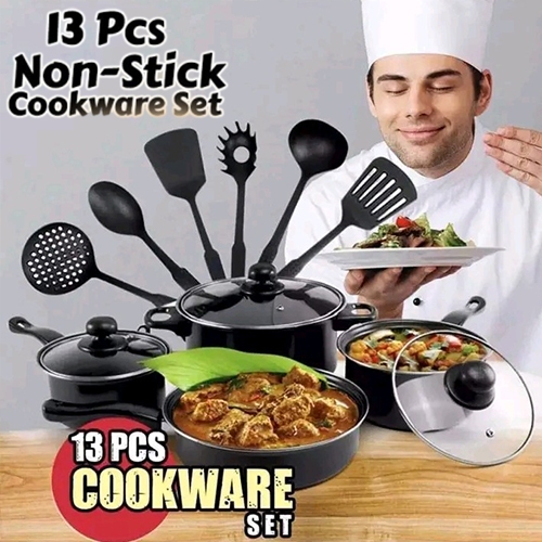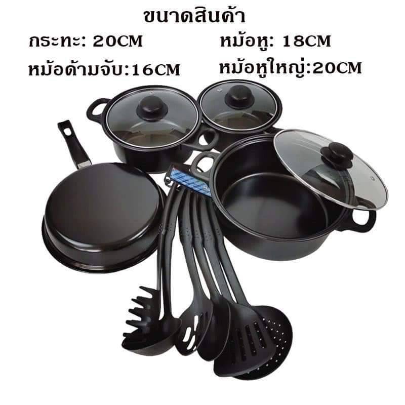 ชุดเครื่องครัว13ชิ้น กระทะเหล็ก ชุดหม้อเคลือบสีดํา กระทะและไม้พาย กระทะเคลือบเทปล่อน ชุดหม้อและกระทะเคลือบเทปล่อน