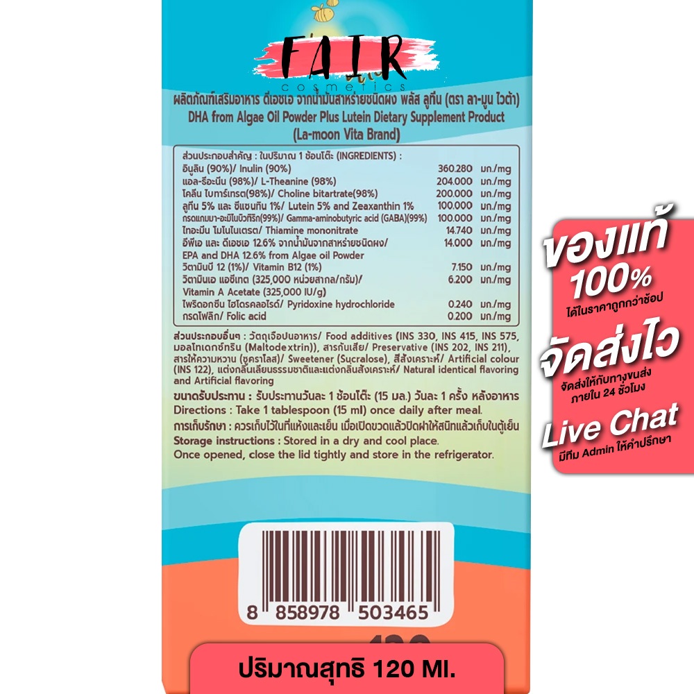 Lamoon Vita DHA 3 ลามูน ไวตา ดีเฮชเอ 3 [ 120 Ml.] ผลิตภัณฑ์เสริมอาหาร ดีเอชเอ จากน้ำมันสาหร่ายชนิดผง