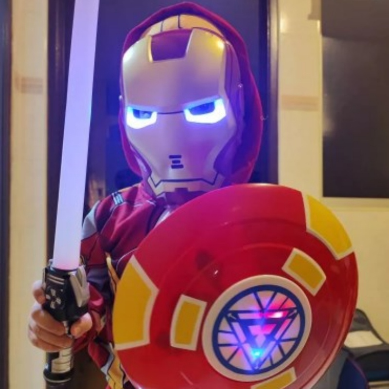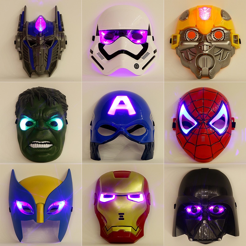 หน้ากากคอสเพลย์ ซูเปอร์ฮีโร่ อเวนเจอร์ส สไปเดอร์แมน ไอรอนแมน อุลตร้าแมน มีไฟ LED เรืองแสง สําหรับปาร์ตี้ฮาโลวีน