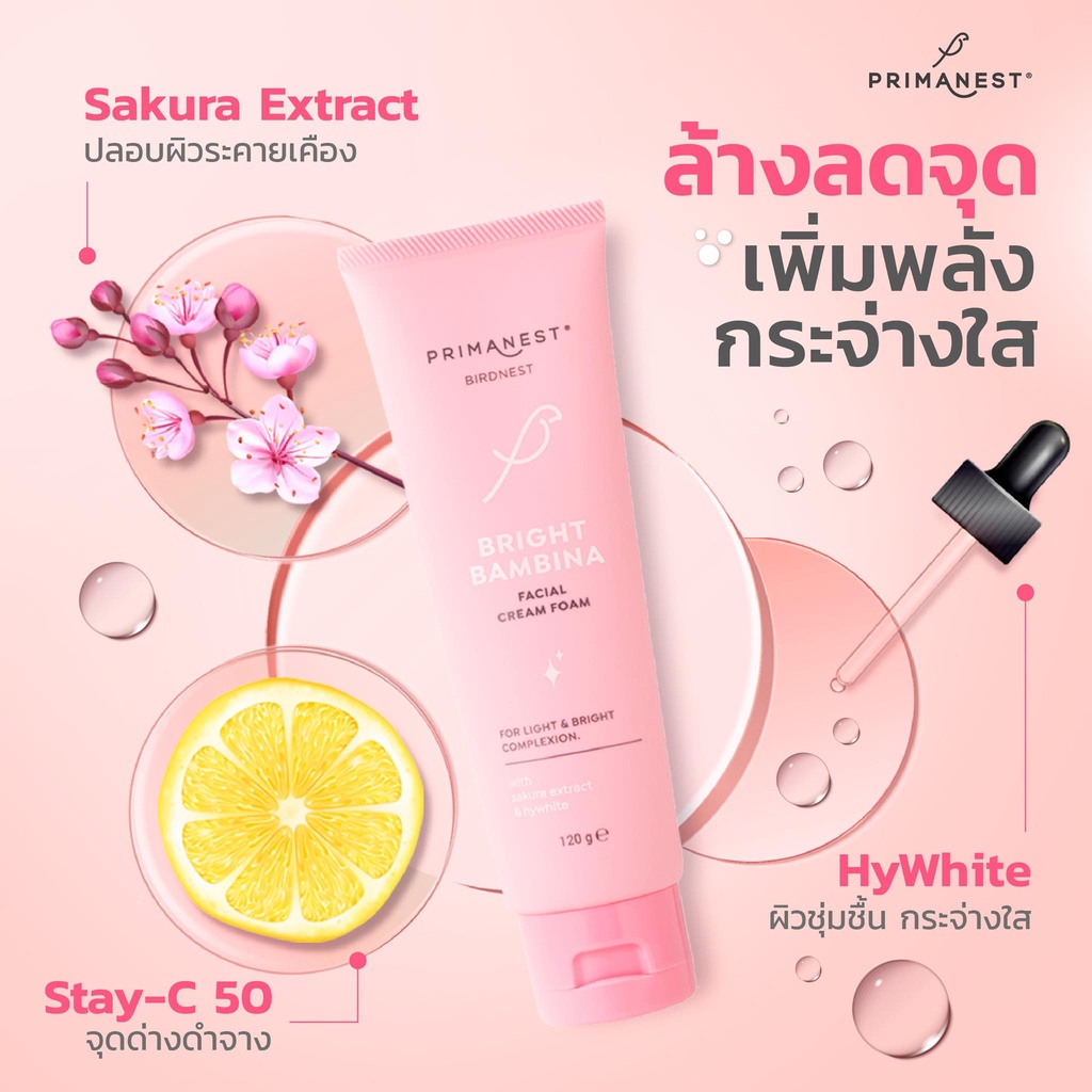 PRIMANEST BIRDNEST BRIGHT BAMBINA FACIAL CREAM FOAM 120ml. พรีมาเนสท์ เบิร์ดเนสท์ ไบร์ท แบมบิน่า เฟเชียล ครีม โฟม 120มล.