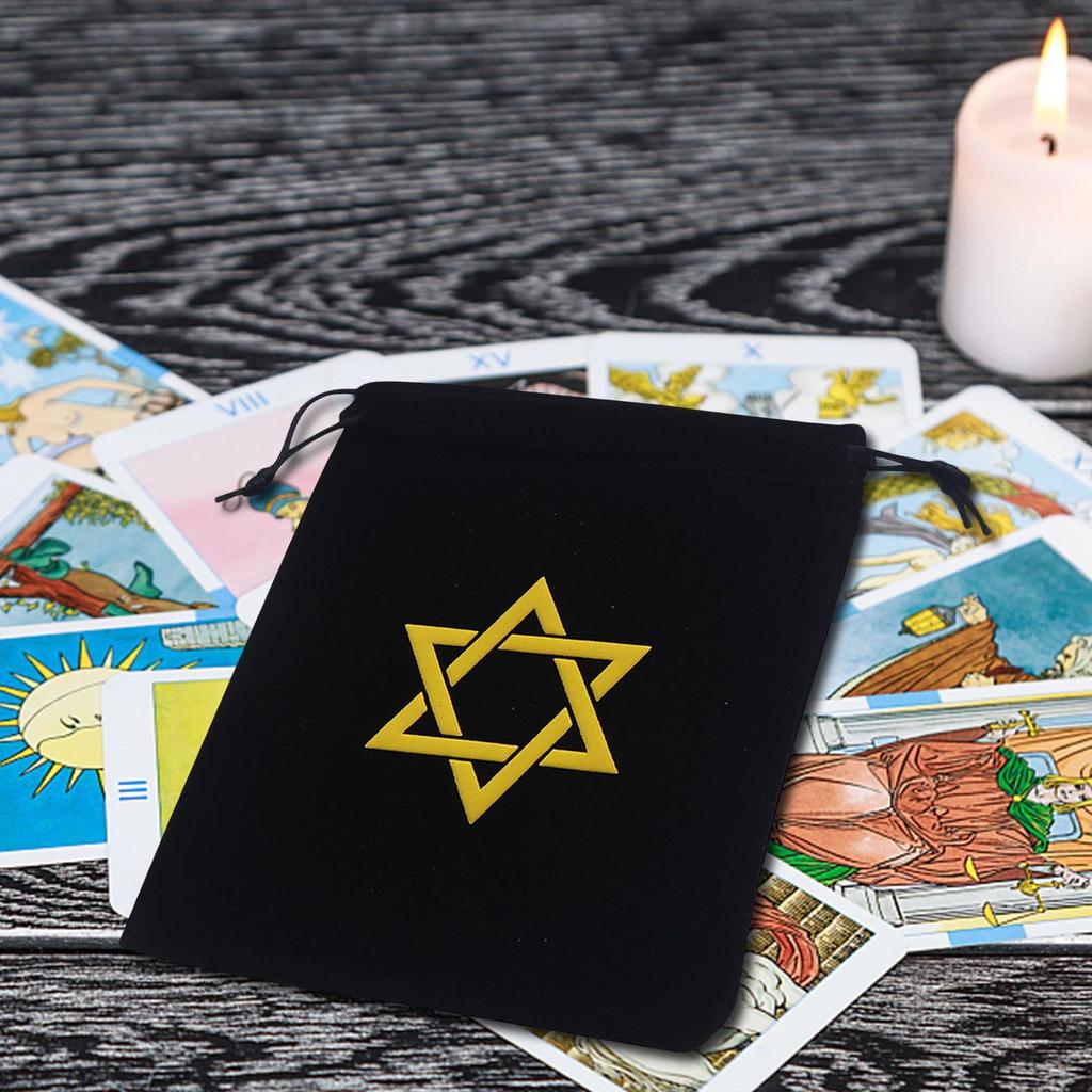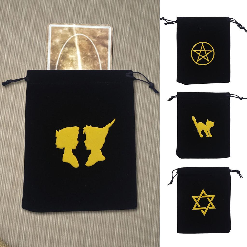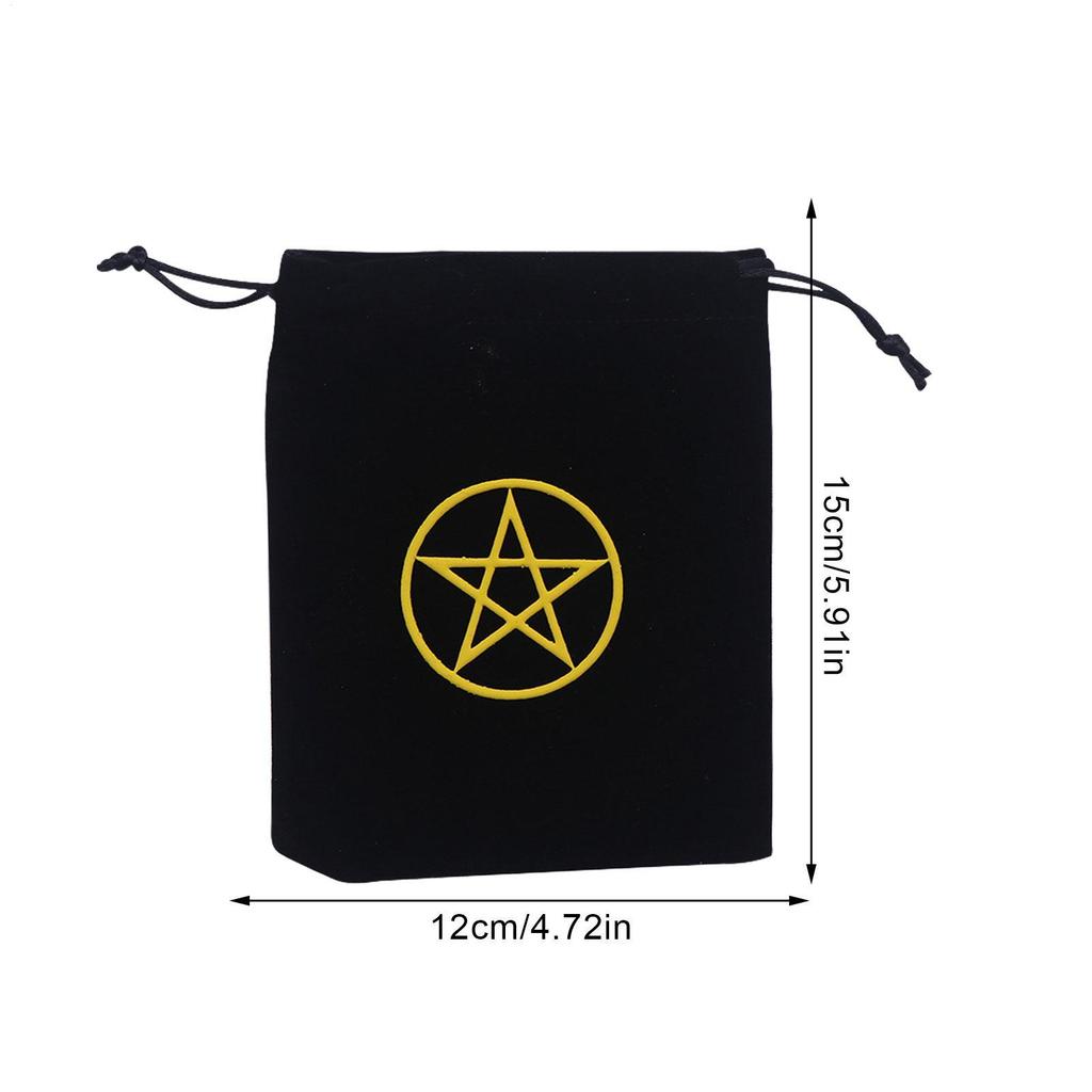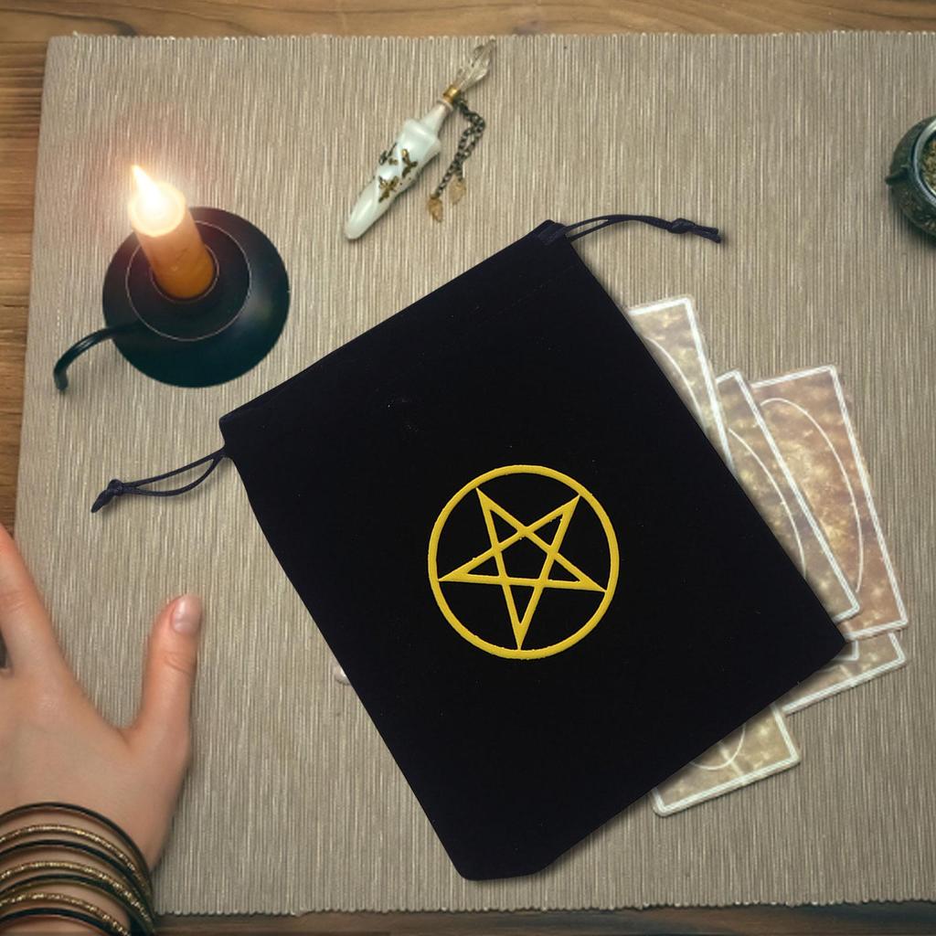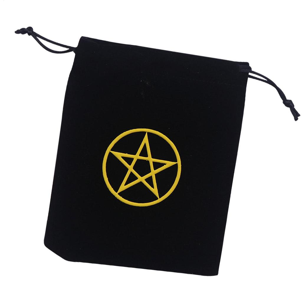 Tarot Deck Holder Printed Tarot Pouch Black Drawstring Pouch With Pentagram Printed Soft Velvet Bag Black Rune notath