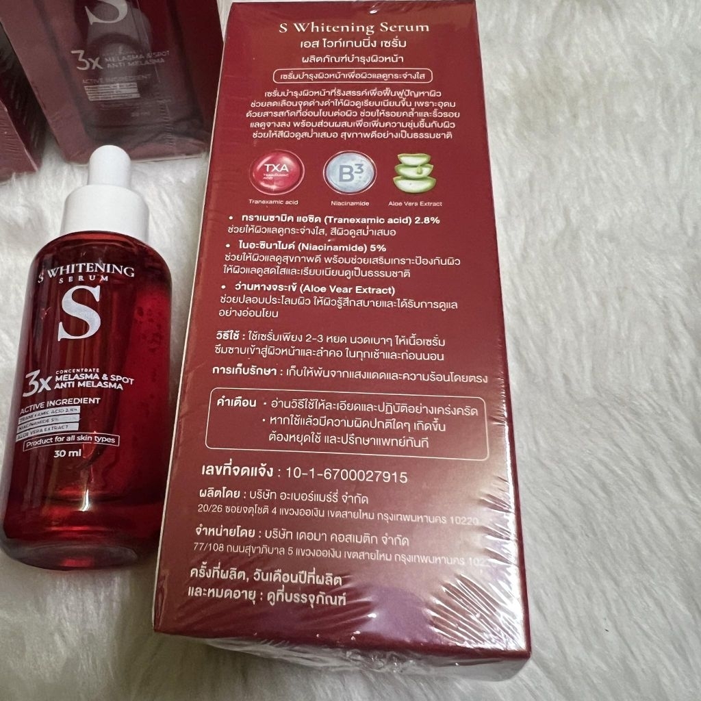 12 ขวด เซรั่ม เอส ไวท์เทนนิ่ง ฝ้า กระ ริ้วรอย สูตรใหม่ เข้มข้น s anti melasma 30ml face serum