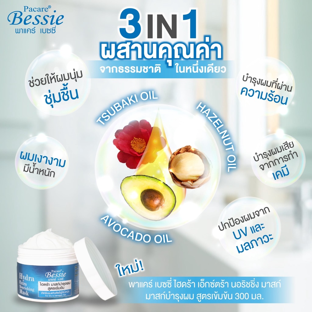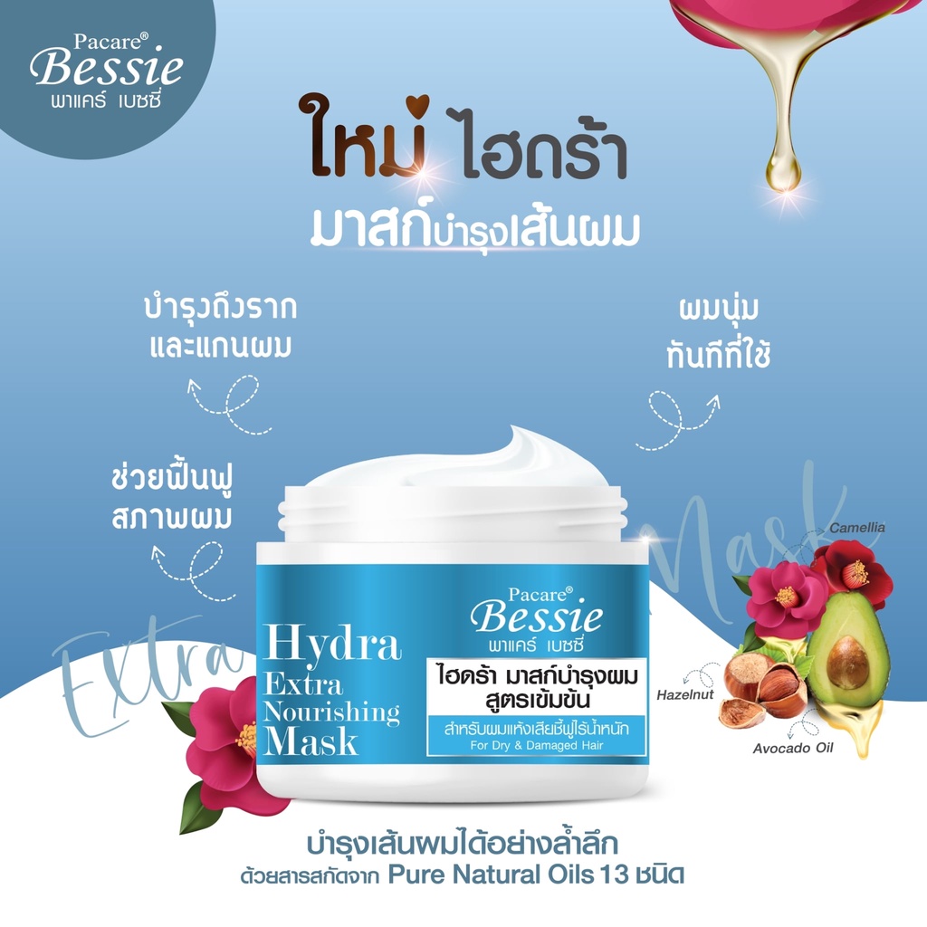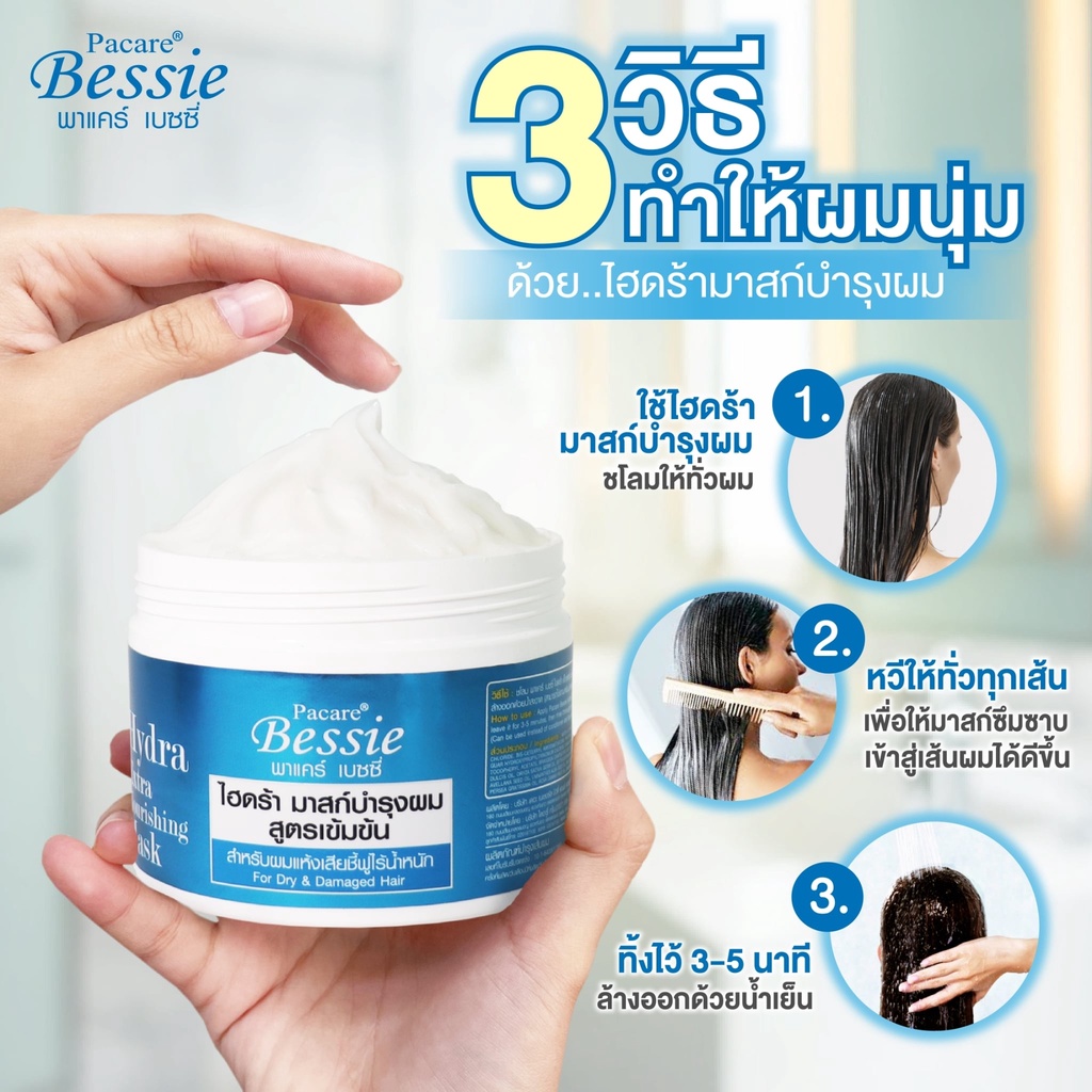 Pacare Bessie พาแคร์ เบนซี่ ไฮดร้า มาสก์ บำรุงเส้นผม 300 มล. ทรีทเมนต์ สูตรเข้มข้น สำหรับผมแห้งเสีย ชี้ฟู ไร้น้ำหนัก