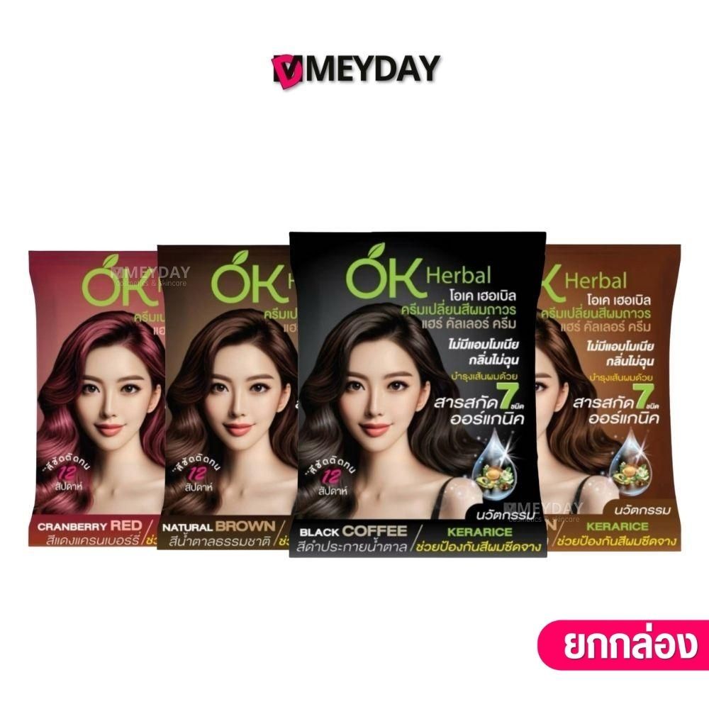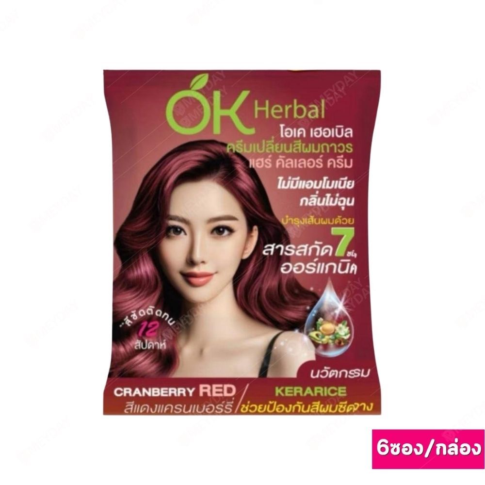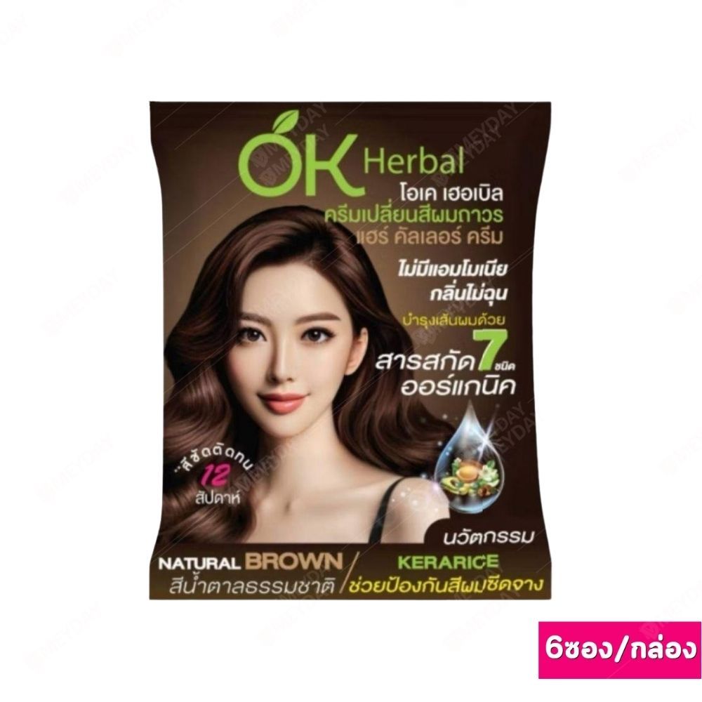 [ยกกล่อง 6 ซอง] OK Herbal Hair Color Cream โอเค เฮอเบิล แฮร์ คัลเลอร์ ครีมเปลี่ยนสีผม ครีมย้อมผม 60ml