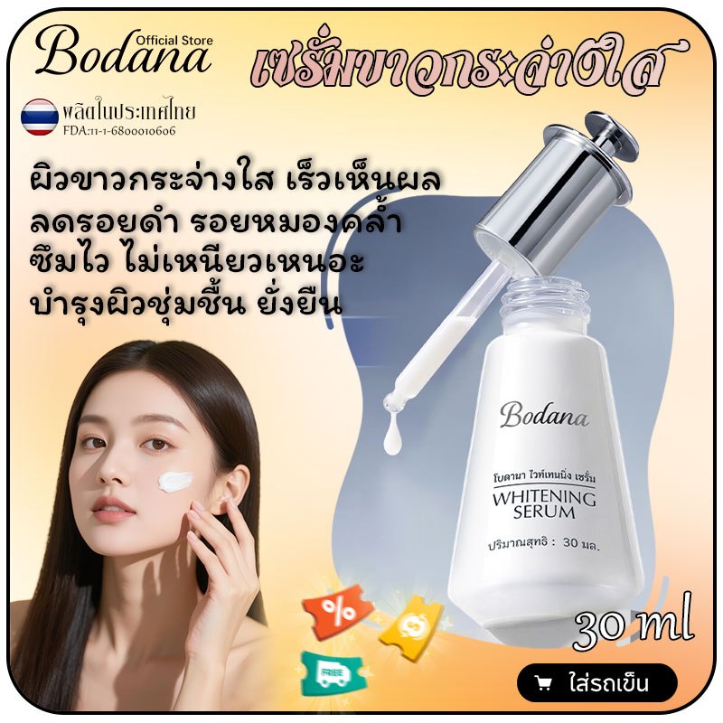 Bodana เซรั่มบำรุงผิวหน้า เซรั่มขาว ผิวขาวกระจ่างใส เร็วเห็นผล ซึมไว ไม่เหนียวเหนอะ