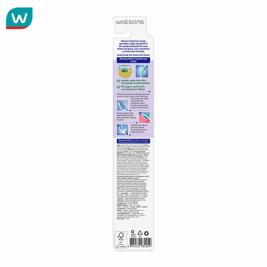 Watsons วัตสัน แปรงสีฟัน ชายย์นิ่ง ไวท์ (ซอฟท์) 1ด้าม.