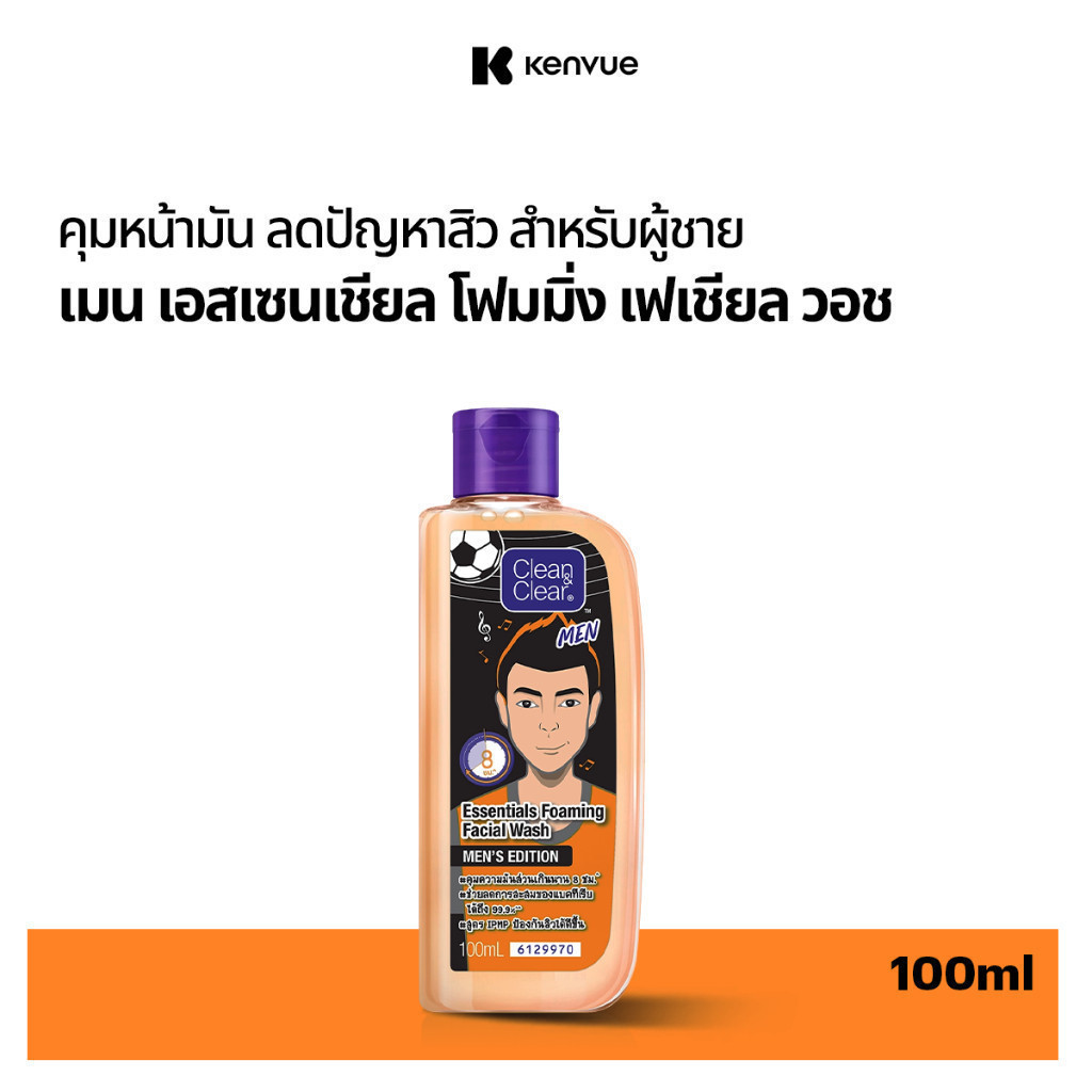 คลีน แอนด์ เคลียร์ เมน เอสเซนเชียล โฟมมิ่ง เฟเชียล วอช 100 มล. Clean & Clear Foaming Facial Wash Men 100ml.