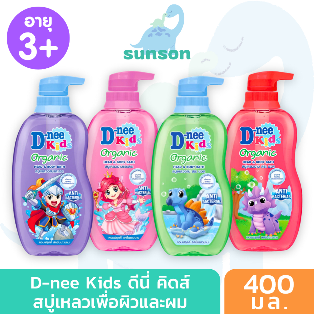 D-nee ดีนี่ คิดส์ สบู่เหลวอาบสระ ขวดปั๊ม สบู่เหลวเพื่อผิวและผม (400 มล.) สบู่อาบน้ำเด็ก สบู่เหลวเด็ก ยาสระผมเด็ก