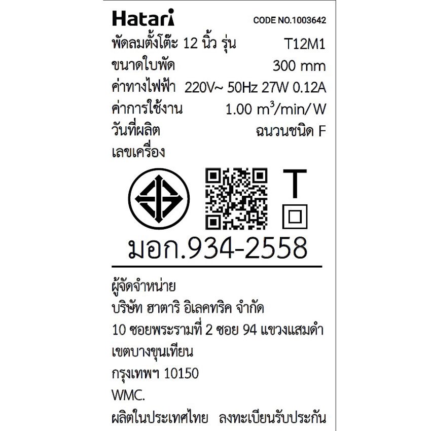 ฮาตาริ พัดลมตั้งโต๊ะ ขนาด 12 นิ้ว (คละสี) รุ่น T12M1 HATARI TABLE FAN 12 INCH (ASSORTED COLORS) MODEL T12M1