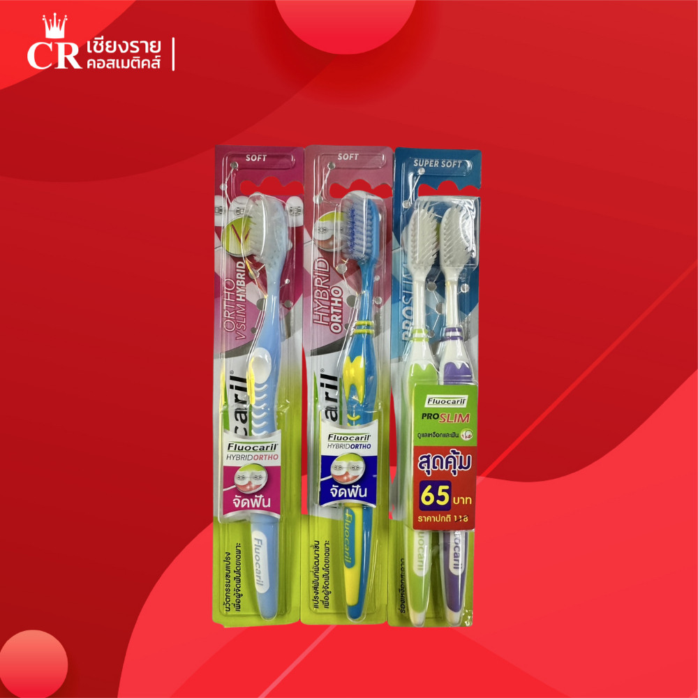 Fluocaril ฟลูโอคารีล แปรงสีฟันรุ่นธรรมดาและคนจัดฟัน คละสี แพ็คคู่/เดี่ยว
